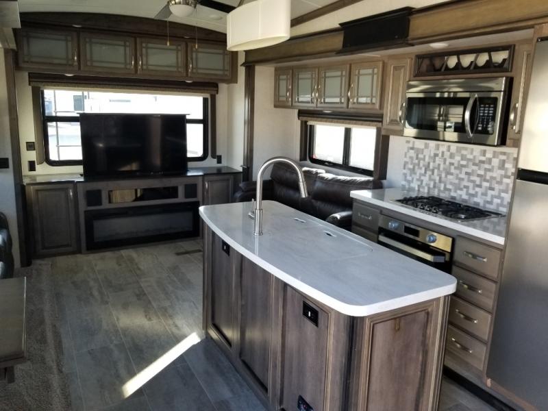 Kitchen Island, Fireplace, Pantry, Coffee Station & Power Recliners!Keystone Montana fifth wheel 3130RE highlights: