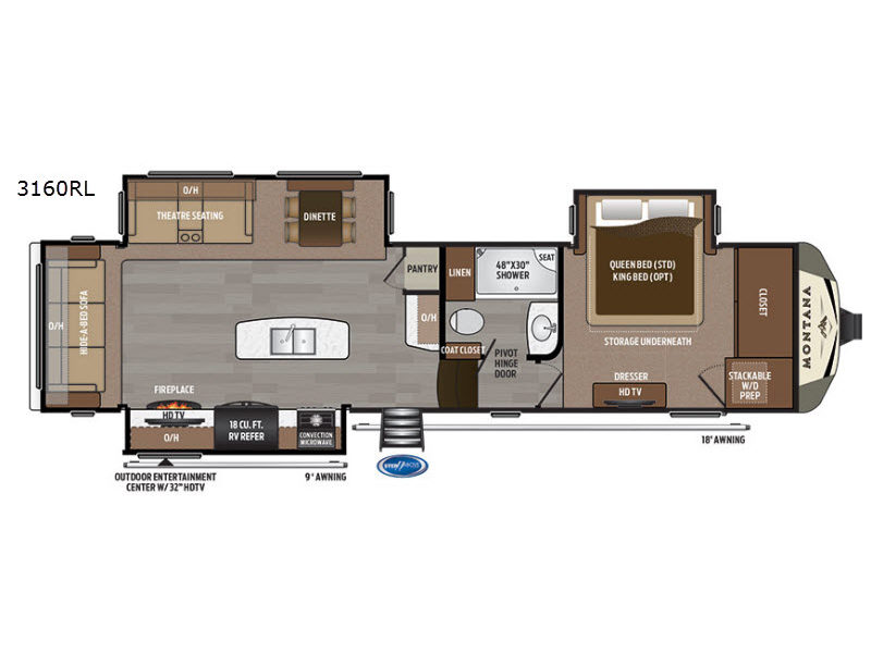 A great place to camp is all that is required with this Keystone Montana fifth wheel model 3160RL. This unit features everything needed to enjoy spending time with family and friends away from home.
