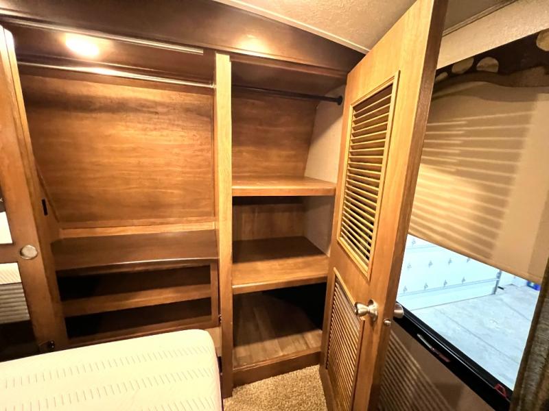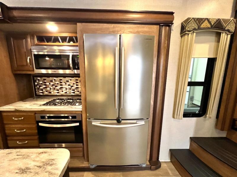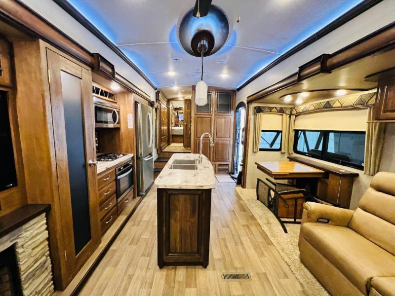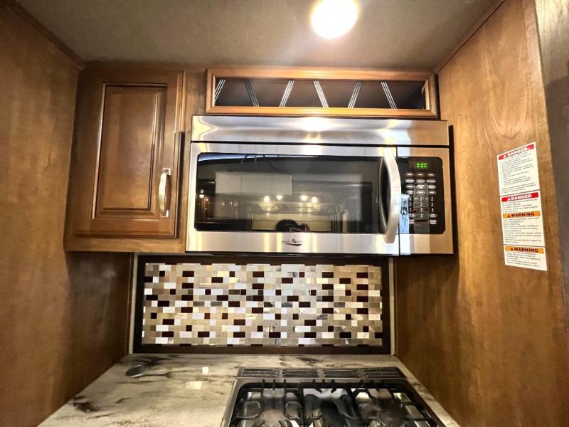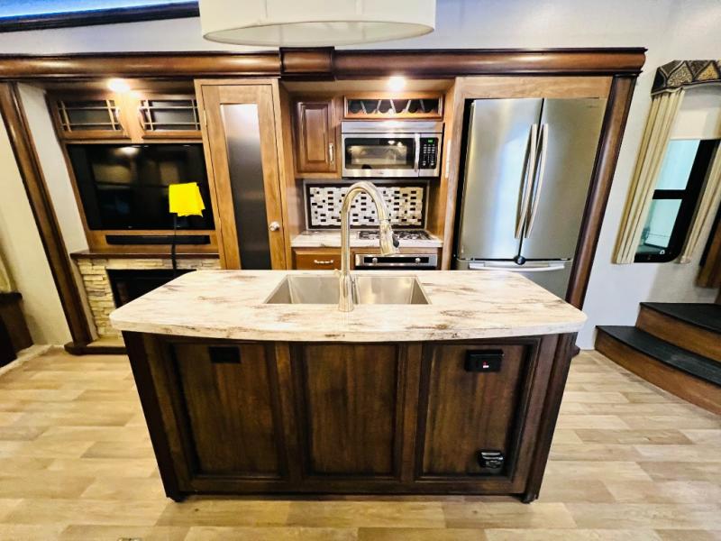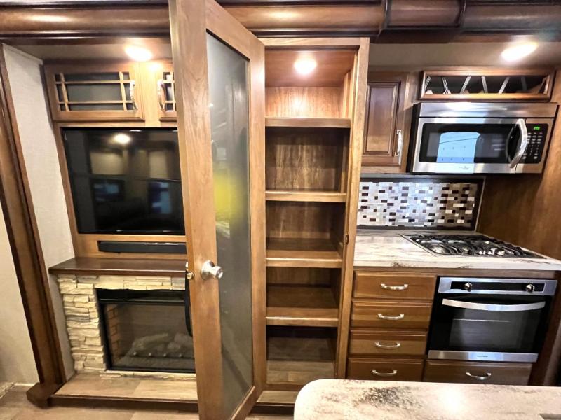 It's time to start planning your next campout vacation with family and friends in this Montana fifth wheel. Model 3721RL offers a wide open living and kitchen area thanks to the dual opposing slide outs. You are sure to enjoy the theatre seats with power recliners and additional furniture when watching the HDTV while keeping warm from the fireplace. The cook can prepare meals and the guests can wash the dishes on the kitchen island. There is an 18 cu. ft. residential refrigerator and convection microwave to mention a few other main features in the kitchen. You also have double entry into the bath as an added convenience. You will find plenty of storage throughout for all your things including an entry wardrobe. When enjoying the outdoors, you can watch the exterior entertainment center with 32" HDTV while sitting under one of the two awnings. Take a look around, this model is the one!