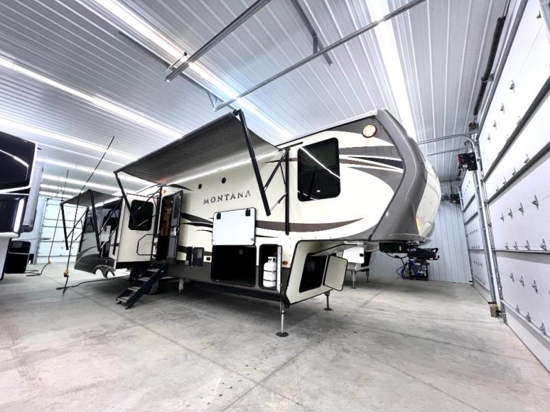 When packing for your next trip in a Keystone Montana luxury fifth wheel you will appreciate the enormous drop frame pass-through storage compartment, MORyde "Step Above" entry steps with strut, and flush mounted LED interior lights to name a few features. Inside you will find an iRelax high density mattress for a good night's sleep, plus a Furrion RV Chef collection oven with auto-ignite and a convection/microwave oven for making your favorite meals. It's time to find the luxury fifth wheel you can enjoy for years to come, choose a Montana by Keystone today!