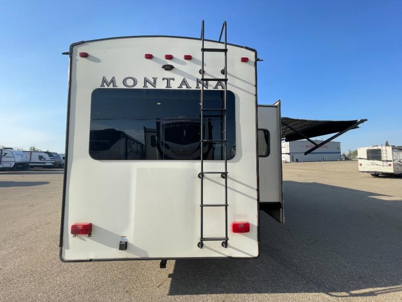 You are going to love the master suite in this Keystone Montana fifth wheel model 3811MS! With triple slide outs, a window lounge up the front, and all of the necessities plus some, this can truly be your luxury home-away-from-home! The master suite features a unique front lounge with a patent-pending window design and storage underneath, a walk-in closet between the bedroom and bathroom including a washer/dryer prepped space, and access to the bathroom. The combined rear living and kitchen area allows you to make meals, visit with family, and relax while watching the HDTV all while being comfortable on the furniture with the warmth of the fireplace. The kitchen features a center island, an 18 cu. ft. residential refrigerator, convection microwave, a hutch, and a pantry, plus more. Outside you can watch the 32" HDTV and entertainment center, relax under one of the two awnings and enjoy the fact that you own a Montana.