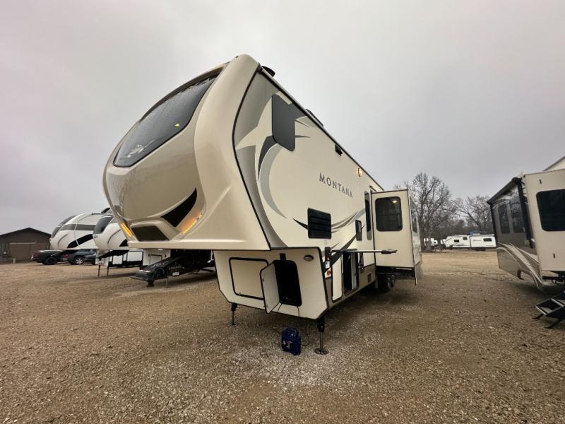 When packing for your next trip in a Keystone Montana luxury fifth wheel you will appreciate the enormous drop frame pass-through storage compartment, MORyde "Step Above" entry steps with strut, and flush mounted LED interior lights to name a few features. Inside you will find an iRelax high density mattress for a good night's sleep, plus a Furrion RV Chef collection oven with auto-ignite and a convection/microwave oven for making your favorite meals. It's time to find the luxury fifth wheel you can enjoy for years to come, choose a Montana by Keystone today!
