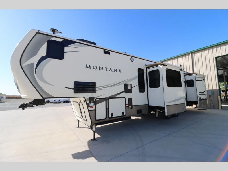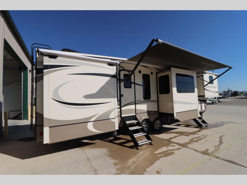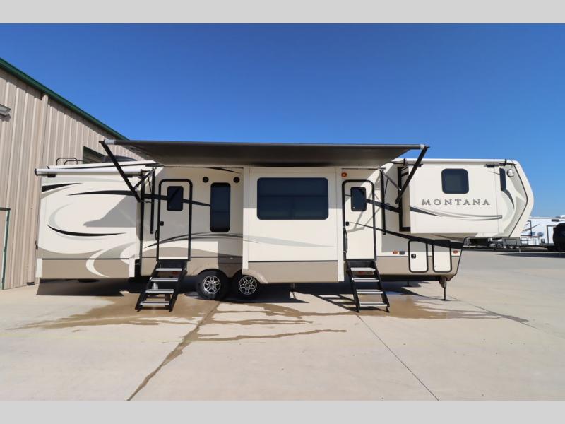 When packing for your next trip in a Keystone Montana luxury fifth wheel you will appreciate the enormous drop frame pass-through storage compartment, MORyde "Step Above" entry steps with strut, and flush mounted LED interior lights to name a few features. Inside you will find an iRelax high density mattress for a good night's sleep, plus a Furrion RV Chef collection oven with auto-ignite and a convection/microwave oven for making your favorite meals. It's time to find the luxury fifth wheel you can enjoy for years to come, choose a Montana by Keystone today!