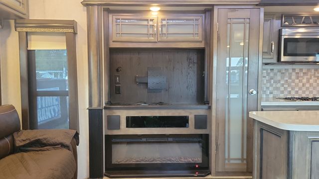 You are sure to love all of the amenities throughout this 3921FB Montana fifth wheel by Keystone RV! Starting with the master suite featuring a walk-through bedroom to the front bathroom with a unique soaking bath tub, dual sinks, and a shower with seat. You will also find a half bath for your guests across from the main entry. The combined rear living and kitchen area allows you to make meals, visit with family, and relax while watching the HDTV all while being comfortable on the furniture with the warmth of the fireplace. You will also enjoy the kitchen island, an 18 cu. ft. residential refrigerator, convection microwave, a coffee station, and a pantry. Outside you can watch the 32" HDTV and entertainment center, relax under one of the two awnings and enjoy the fact that you own a Montana.