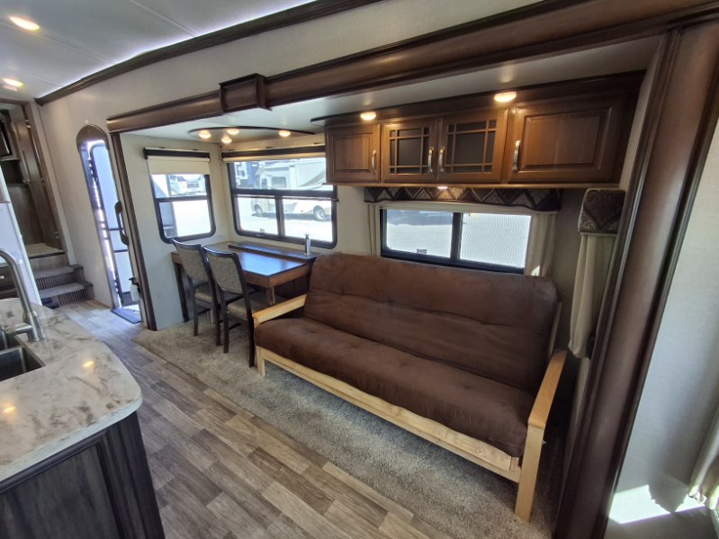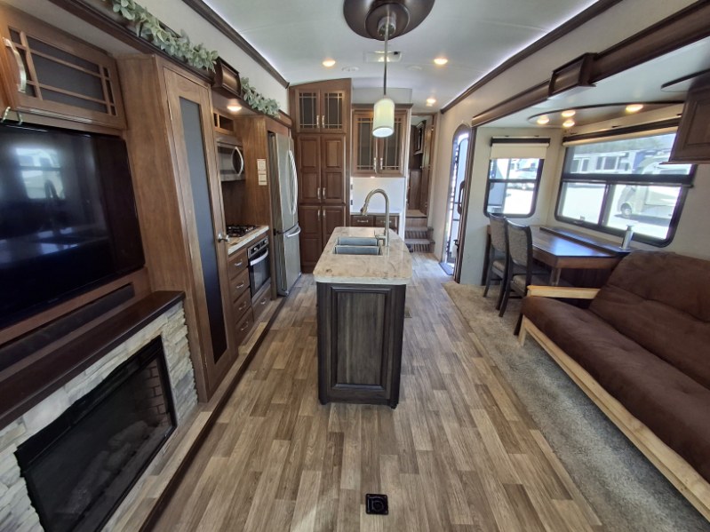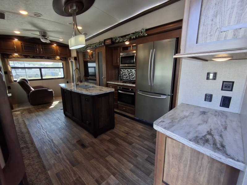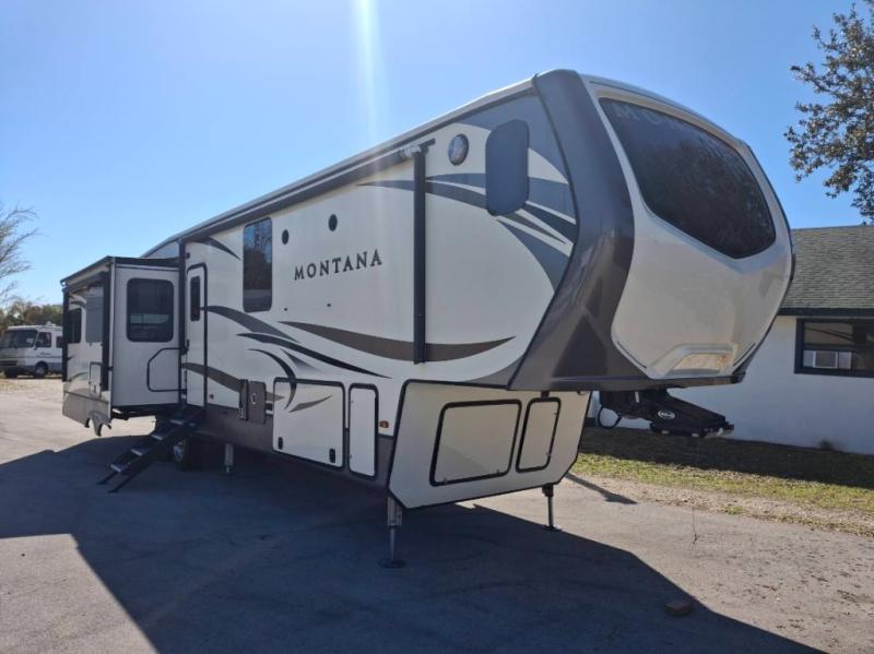 When packing for your next trip in a Keystone Montana luxury fifth wheel you will appreciate the enormous drop frame pass-through storage compartment, MORyde "Step Above" entry steps with strut, and flush mounted LED interior lights to name a few features. Inside you will find an iRelax high density mattress for a good night's sleep, plus a Furrion RV Chef collection oven with auto-ignite and a convection/microwave oven for making your favorite meals. It's time to find the luxury fifth wheel you can enjoy for years to come, choose a Montana by Keystone today!