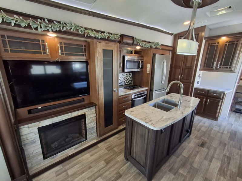 You are sure to love all of the amenities throughout this 3921FB Montana fifth wheel by Keystone RV! Starting with the master suite featuring a walk-through bedroom to the front bathroom with a unique soaking bath tub, dual sinks, and a shower with seat. You will also find a half bath for your guests across from the main entry. The combined rear living and kitchen area allows you to make meals, visit with family, and relax while watching the HDTV all while being comfortable on the furniture with the warmth of the fireplace. You will also enjoy the kitchen island, an 18 cu. ft. residential refrigerator, convection microwave, a coffee station, and a pantry. Outside you can watch the 32" HDTV and entertainment center, relax under one of the two awnings and enjoy the fact that you own a Montana.
