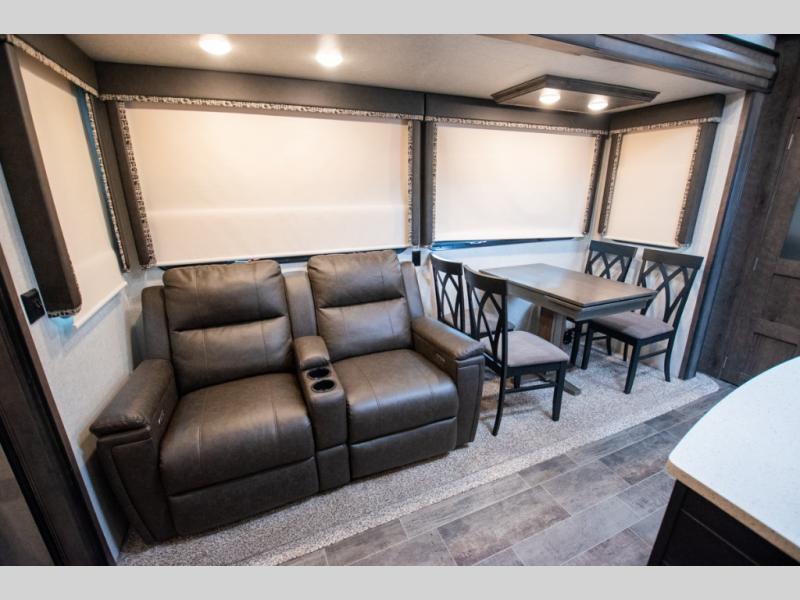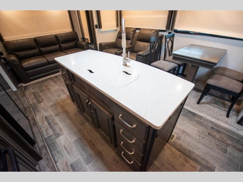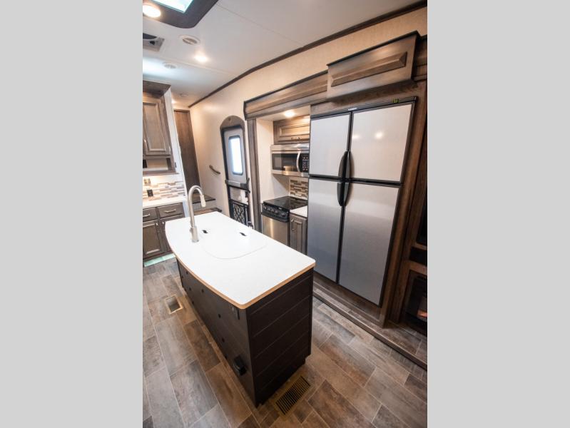 When heading out and setting up in a Keystone Montana High Country fifth wheel you will appreciate the Dexter E-Z Lube axles, Max Turn front cap and radius frame with Hitch Vision, and an enormous drop frame pass-through storage compartment to name a few features. Inside you will find luxury and comfort with the 78" tall main slide out with panoramic windows providing beautiful views, more bathroom storage with three drawers in a residential vanity, All-In-One Furrion controls for the TV, radio and fireplace, Beauflor flooring with a 7 year cold cracking warranty, and a residential ceiling fan for natural air movement. It's time to find the premium fifth wheel you can't live without, and start making memories in a Montana High Country today!