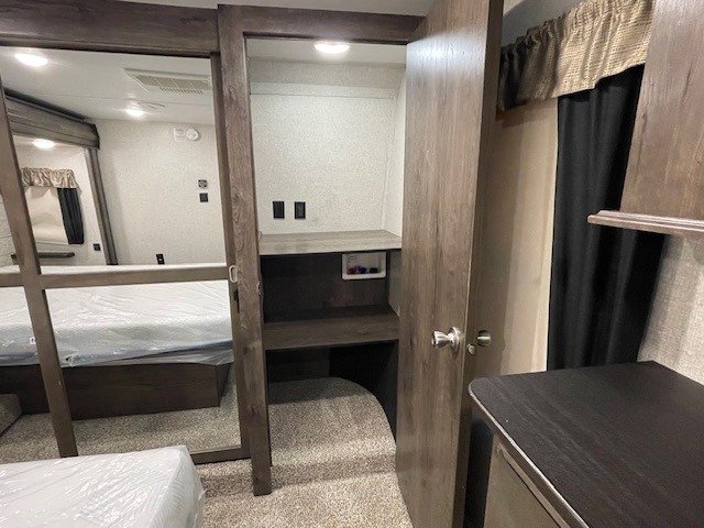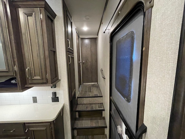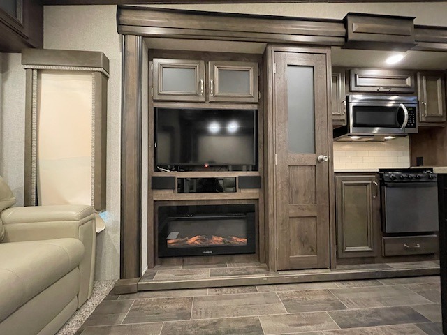 When you are ready to relax or entertain in luxury, step into this Montana High Country fifth wheel. Model 331RL offers triple slide outs, two slides in the main living and kitchen area, and one slide in the front bedroom providing lots of space to move around. Just imagine using the kitchen island for prepping and serving meals to your friends. You will also love the hutch for displaying decor and storing extra dishes. Everyone can watch the big game on the HD LED TV above an electric fireplace controlled by a remote to keep everyone warm. There is plenty of seating as well. The front bedroom provides your own oasis with a shiplap design headboard, a 32" HD LED TV, and plenty of storage for all your things. You might even choose a stackable washer/dryer option to keep your clothes clean while away from home. There is a 2" receiver hitch on the rear, exterior storage, an awning, plus much more outside and inside! Choose this model today!