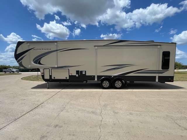 When heading out and setting up in a Keystone Montana High Country fifth wheel you will appreciate the Dexter E-Z Lube axles, Max Turn front cap and radius frame with Hitch Vision, and an enormous drop frame pass-through storage to name a few features. Inside you will find luxury and comfort with the 78" tall main slide out with panoramic windows providing beautiful views, more bathroom storage with three drawers in a residential vanity, All-In-One Furrion controls for the TV, radio and fireplace, Beauflor flooring with a 7 year cold cracking warranty, and a residential ceiling fan for natural air movement. It's time to find the premium fifth wheel you can't live without, and start making memories in a Montana High Country today!
