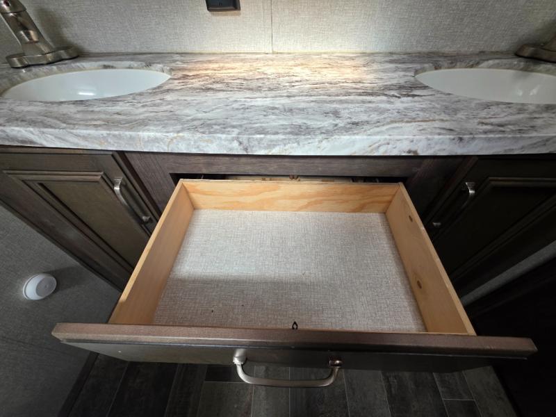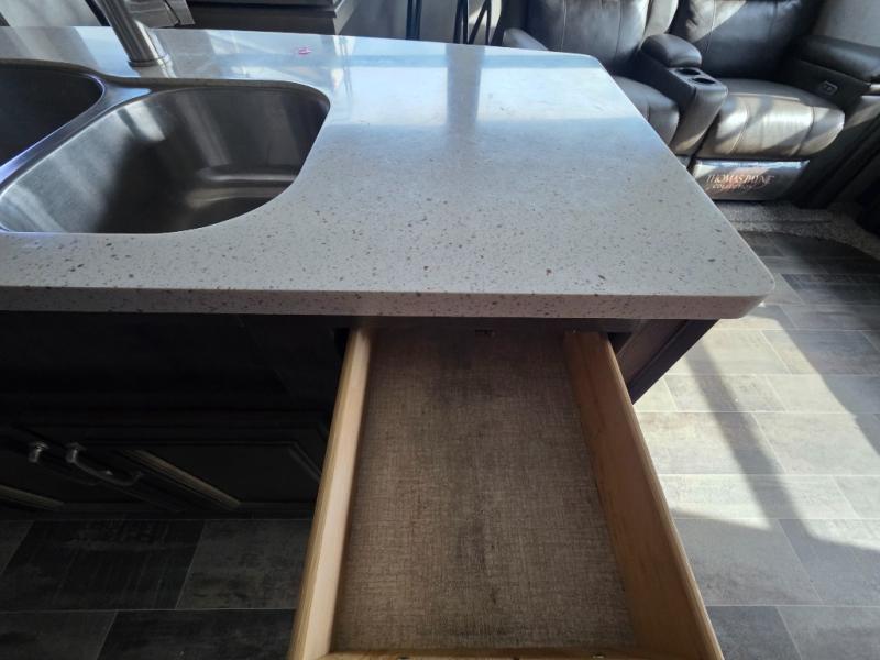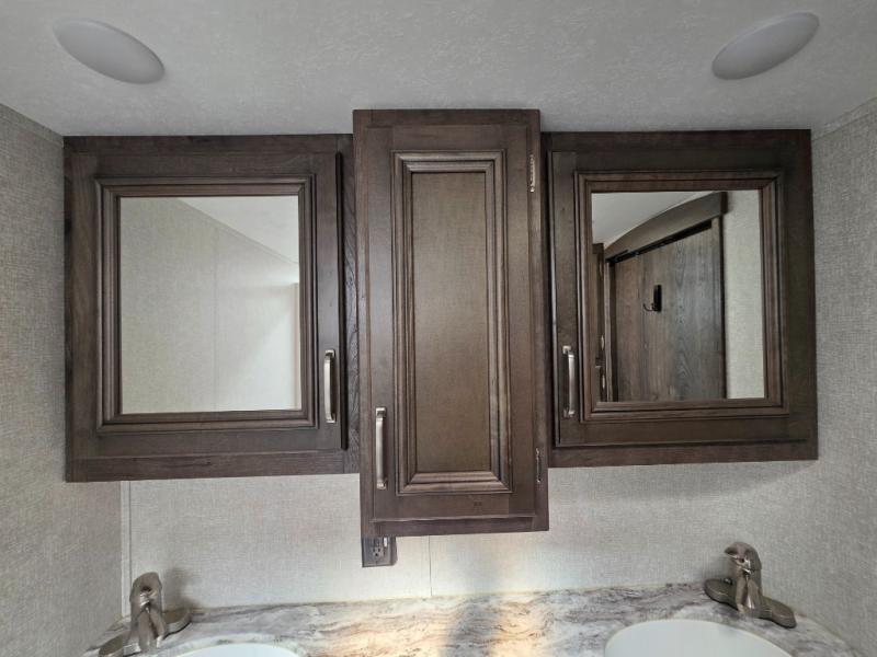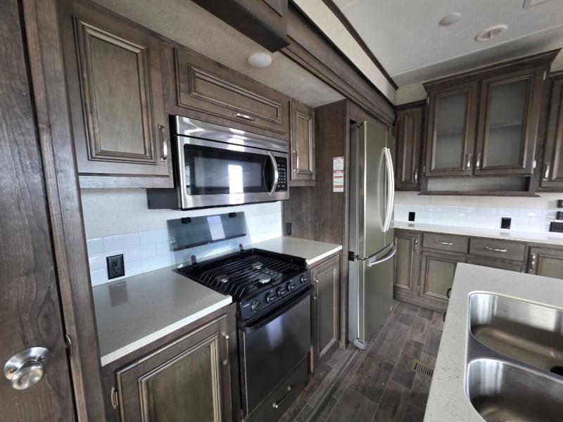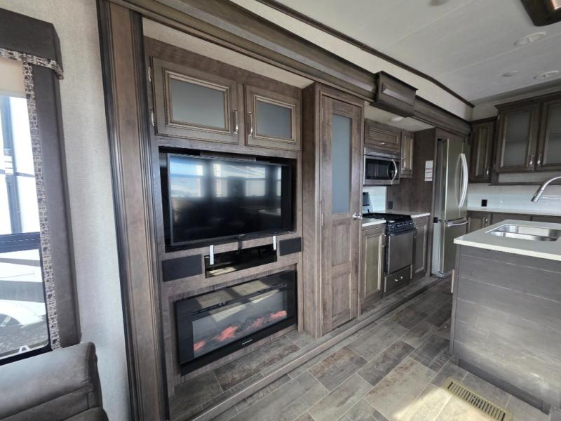 When heading out and setting up in a Keystone Montana High Country fifth wheel you will appreciate the Dexter E-Z Lube axles, Max Turn front cap and radius frame with Hitch Vision, and an enormous drop frame pass-through storage to name a few features. Inside you will find luxury and comfort with the 78" tall main slide out with panoramic windows providing beautiful views, more bathroom storage with three drawers in a residential vanity, All-In-One Furrion controls for the TV, radio and fireplace, Beauflor flooring with a 7 year cold cracking warranty, and a residential ceiling fan for natural air movement. It's time to find the premium fifth wheel you can't live without, and start making memories in a Montana High Country today!