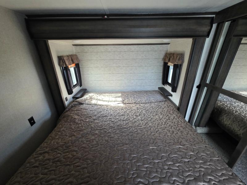 When you are ready to relax or entertain in luxury, step into this Montana High Country fifth wheel. Model 331RL offers triple slide outs, two slides in the main living and kitchen area, and one slide in the front bedroom providing lots of space to move around. Just imagine using the kitchen island for prepping and serving meals to your friends. You will also love the hutch for displaying decor and storing extra dishes. Everyone can watch the big game on the HD LED TV above an electric fireplace controlled by a remote to keep everyone warm. There is plenty of seating as well. The front bedroom provides your own oasis with a shiplap design headboard, a 32" HD LED TV, and plenty of storage for all your things. You might even choose a stackable washer/dryer option to keep your clothes clean while away from home. There is a 2" receiver hitch on the rear, exterior storage, an awning, plus much more outside and inside! Choose this model today!
