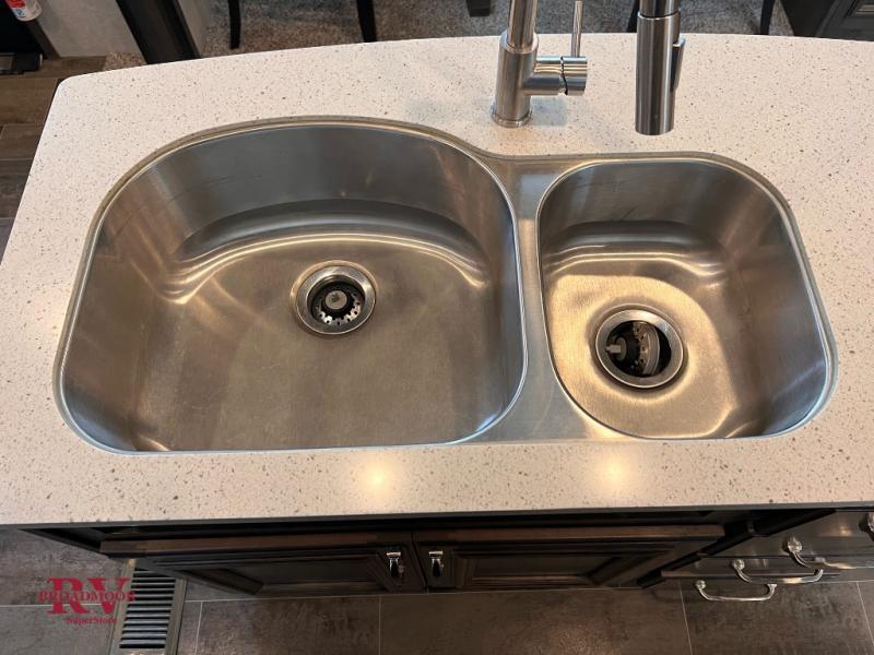 Looking for many at-home conveniences and comforts in your next fifth wheel? This Montana High Country 344RL will have you thinking about going full-time in this RV. Starting with the kitchen area, you will find a center island with counter extension for extra prep space, a coffee station for the coffee lover in the family, and a 12 cu. ft. RV refrigerator for plenty of storage for all your perishables. The living area offers several seating choices, plus a HD LED TV above an electric fireplace controlled by a remote. There is a shiplap design headboard for the queen bed with storage underneath, and a 32" HD LED TV to watch if you prefer your own shows over your spouse's choices. Outside you can enjoy the outdoor kitchen with a two burner cooktop, microwave, and a refrigerator. You will also find a water station, awning, and a 2" receiver hitch on the rear, plus more! Take a look today!