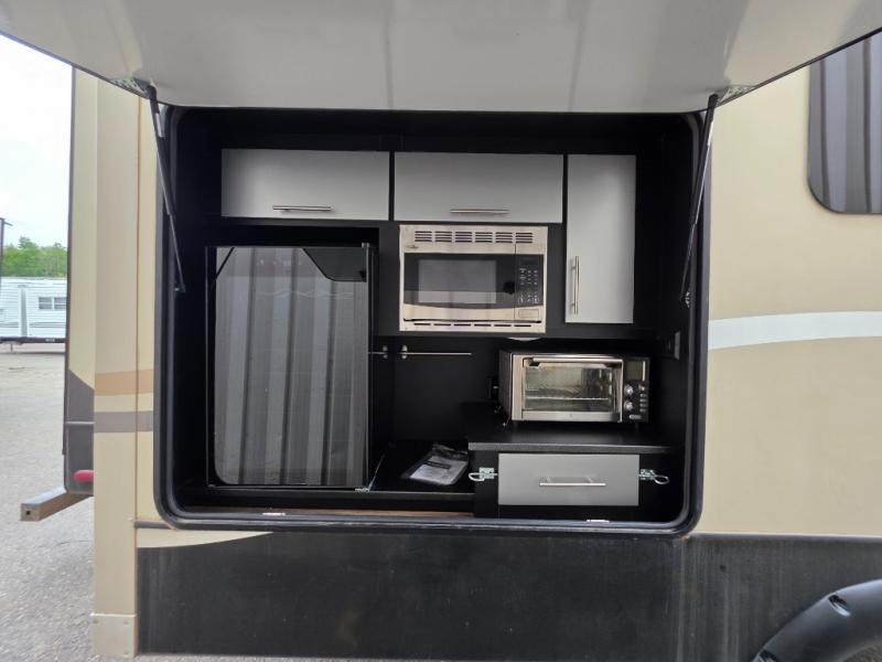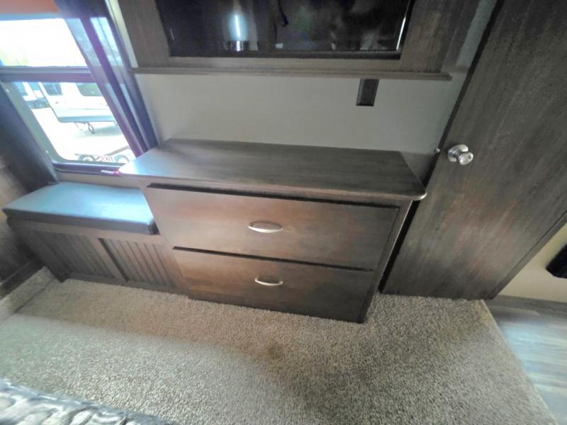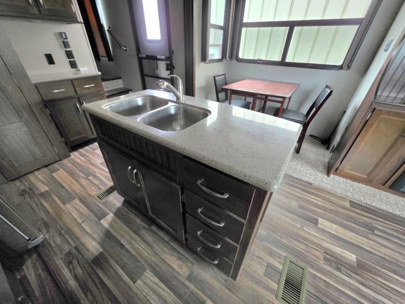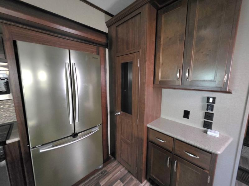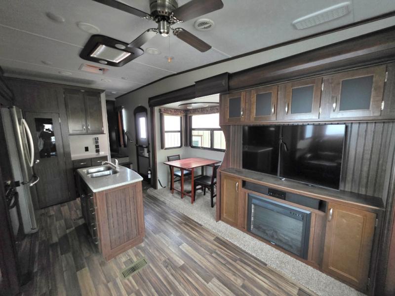 Looking for many at-home conveniences and comforts in your next fifth wheel? This Montana High Country 345RL will have you thinking about going full-time in this RV. Starting with the kitchen area, you will find a center island with counter extension for extra prep space, a coffee station for the coffee lover in the family, and an 18 cu. ft. residential refrigerator for plenty of storage for all your perishables. The living area offers several seating choices, plus a HD LED TV above an electric fireplace controlled by a remote. There is a shiplap design headboard for the queen bed with storage underneath, and a 32" HD LED TV to watch if you prefer your own shows over your spouse's choices. Outside you can enjoy the outdoor kitchen with a two burner cooktop, microwave, and a refrigerator. You will also find a water station, awning, and a 2" receiver hitch on the rear, plus more! Take a look today!