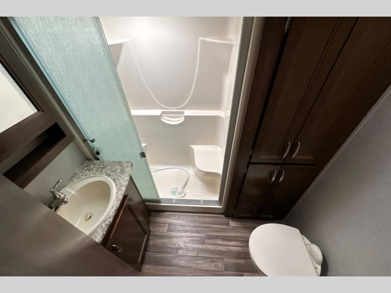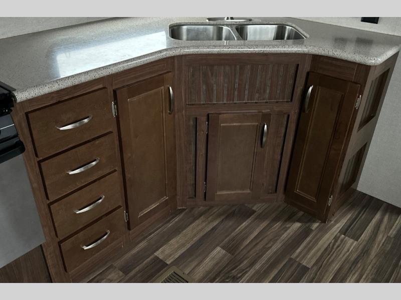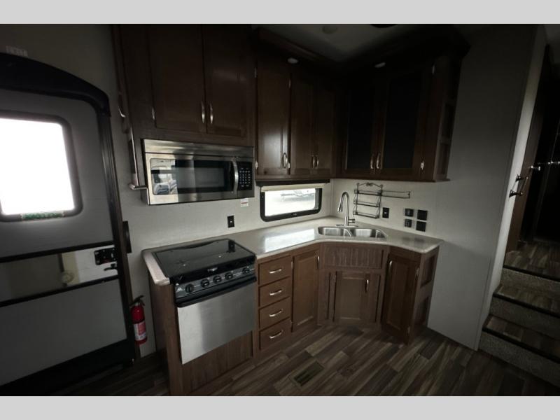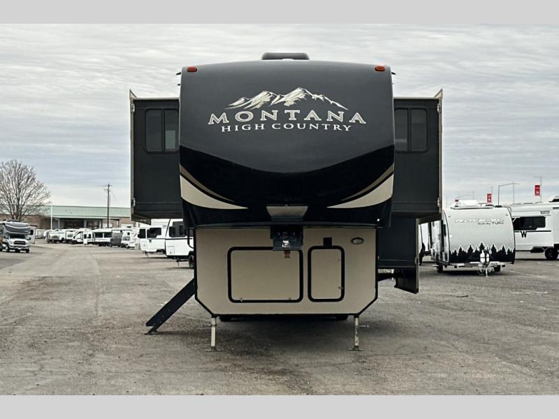 When heading out and setting up in a Keystone Montana High Country fifth wheel you will appreciate the Dexter E-Z Lube axles, Max Turn front cap and radius frame with Hitch Vision, and an enormous drop frame pass-through storage to name a few features. Inside you will find luxury and comfort with the 78" tall main slide out with panoramic windows providing beautiful views, more bathroom storage with three drawers in a residential vanity, All-In-One Furrion controls for the TV, radio and fireplace, Beauflor flooring with a 7 year cold cracking warranty, and a residential ceiling fan for natural air movement. It's time to find the premium fifth wheel you can't live without, and start making memories in a Montana High Country today!