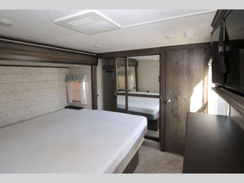 This Keystone Montana High Country fifth wheel model 384BR provides many at-home conveniences, comforts, and lots of space for a large family. Starting with the kitchen area, you will find the cook at the center island with a counter extension for extra prep space, making a cup of Joe at the coffee station, or finding the ingredients from the large pantry or 12 cu. ft. RV refrigerator. Everyone can gather in the living area with plenty of seating choices while watching the HD LED TV and staying warm by the electric fireplace controlled by a remote. You will love the look of the shiplap design headboard for the queen bed, and escaping to watch the 32" HD LED TV when the kids are watching the other TV. The extra bedroom/office offers a hide-a-bed sofa, and a desk for homework or office work. You will find a loft above this room for more sleeping options. Outside you can enjoy the outdoor kitchen with a two burner cooktop and a refrigerator. You will also find an awning to relax under outside, and a 2" receiver hitch in the rear for a bike rack or such. Step inside, you will not regret it!