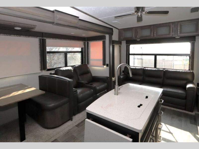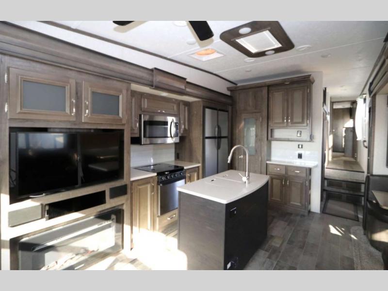 When heading out and setting up in a Keystone Montana High Country fifth wheel you will appreciate the Dexter E-Z Lube axles, Max Turn front cap and radius frame with Hitch Vision, and an enormous drop frame pass-through storage to name a few features. Inside you will find luxury and comfort with the 78" tall main slide out with panoramic windows providing beautiful views, more bathroom storage with three drawers in a residential vanity, All-In-One Furrion controls for the TV, radio and fireplace, Beauflor flooring with a 7 year cold cracking warranty, and a residential ceiling fan for natural air movement. It's time to find the premium fifth wheel you can't live without, and start making memories in a Montana High Country today!