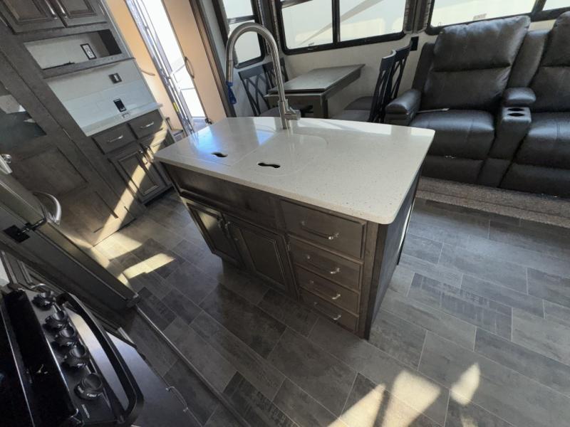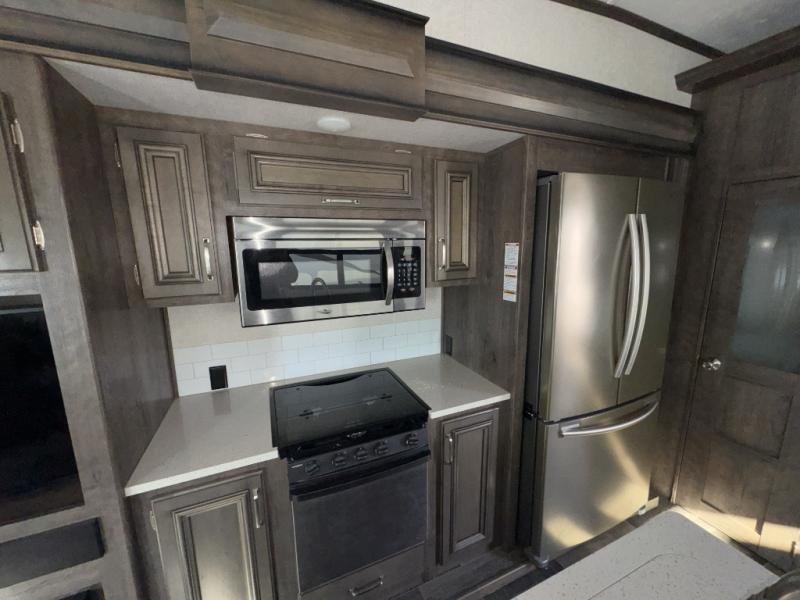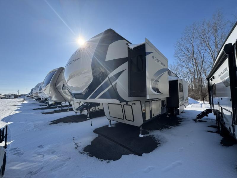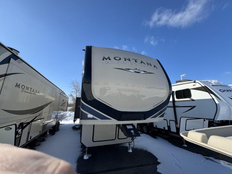 When heading out and setting up in a Keystone Montana High Country fifth wheel you will appreciate the Dexter E-Z Lube axles, Max Turn front cap and radius frame with Hitch Vision, and an enormous drop frame pass-through storage to name a few features. Inside you will find luxury and comfort with the 78" tall main slide out with panoramic windows providing beautiful views, more bathroom storage with three drawers in a residential vanity, All-In-One Furrion controls for the TV, radio and fireplace, Beauflor flooring with a 7 year cold cracking warranty, and a residential ceiling fan for natural air movement. It's time to find the premium fifth wheel you can't live without, and start making memories in a Montana High Country today!