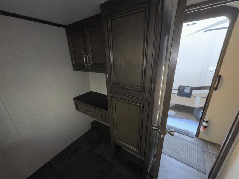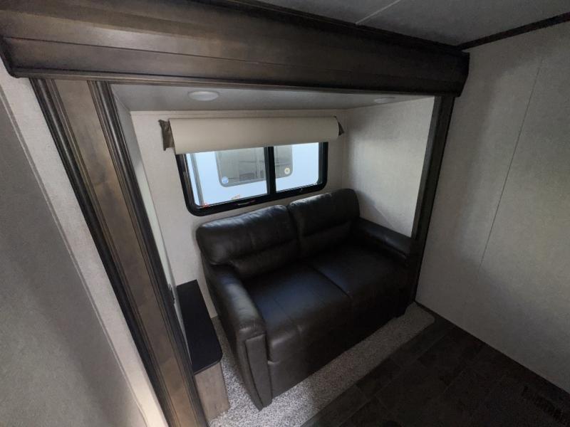 This Keystone Montana High Country fifth wheel model 385BR provides many at-home conveniences, comforts, and lots of space for a large family. Starting with the kitchen area, you will find the cook at the center island with a counter extension for extra prep space, making a cup of Joe at the coffee station, or finding the ingredients from the large pantry or 18 cu. ft. residential refrigerator. Everyone can gather in the living area with plenty of seating choices while watching the HD LED TV and staying warm by the electric fireplace controlled by a remote. You will love the look of the shiplap design headboard for the queen bed, and escaping to watch the 32" HD LED TV when the kids are watching the other TV. The extra bedroom/office offers a hide-a-bed sofa, and a desk for homework or office work. You will find a loft above this room for more sleeping options. Outside you can enjoy the outdoor kitchen with a two burner cooktop and a refrigerator. You will also find an awning to relax under outside, and a 2" receiver hitch in the rear for a bike rack or such. Step inside, you will not regret it!