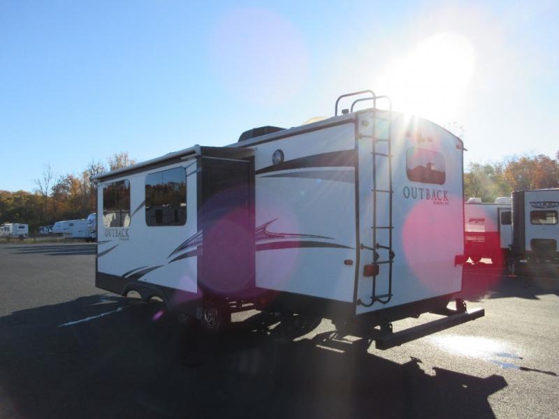 If you have been searching for a travel trailer with a front bedroom, rear bath, and an outside kitchen then take a look at this Outback 266RB by Keystone RV.