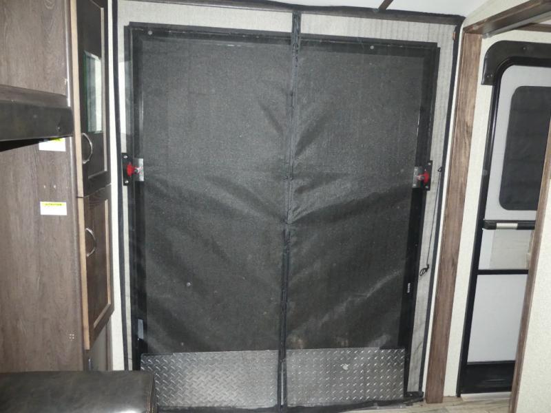 Model 324CG offers double slides, bunk beds in the front cargo room with a side ramp door, dual entry doors, a king size bed, and an outdoor camp kitchen for the chef in the family to enjoy!