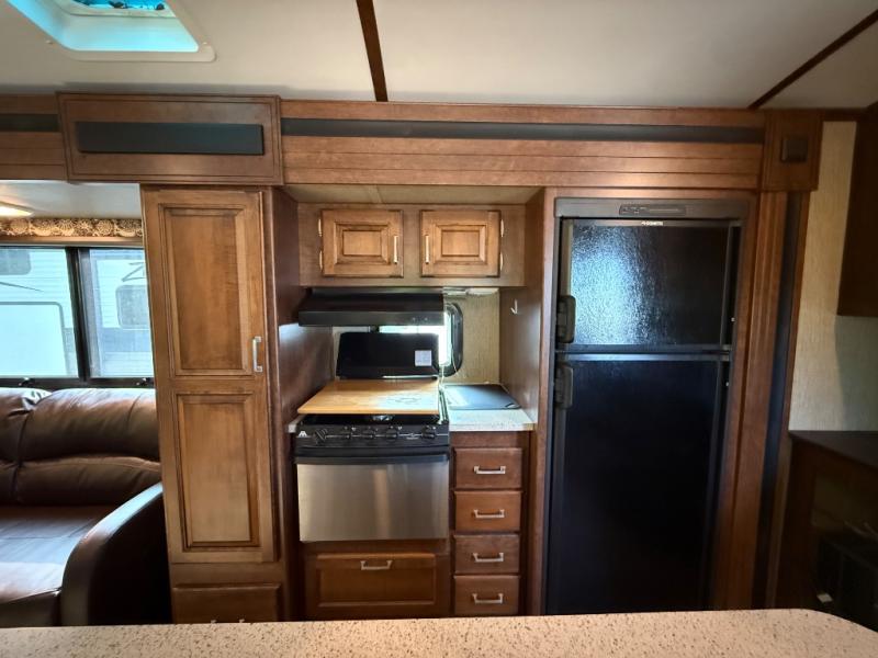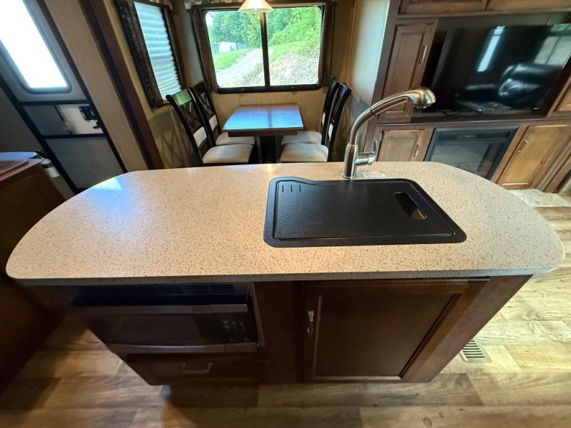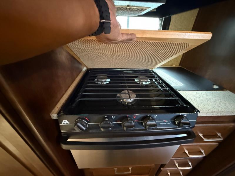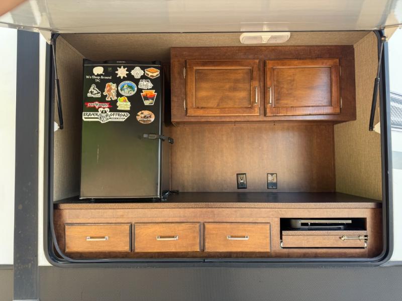 Before you step foot inside 330RL, be sure to check out the outdoor kitchen. Here you will find a two-burner flip-out stove, a refrigerator, and an overhead cabinet. Now you can spend more time outdoors with your family, while fixing quick snacks or a light meal.