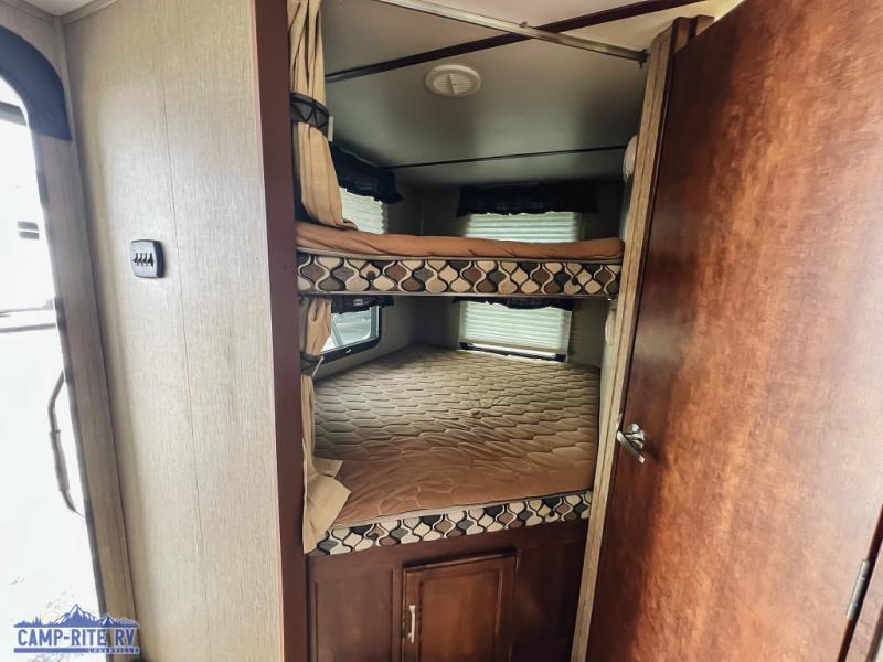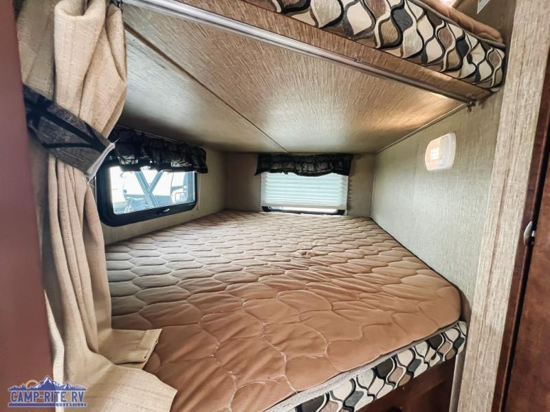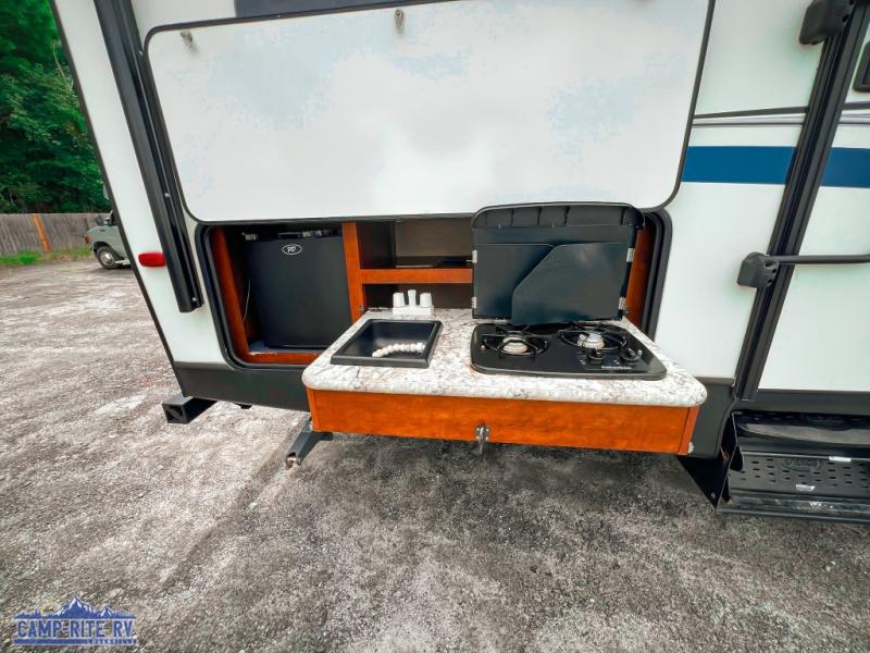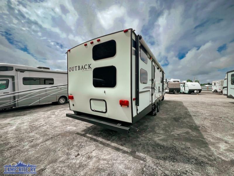 It's time to invite the crew on your next trip in this Outback Ultra Lite travel trailer. Model 314UBH offers the convenience of dual entry, and two slide outs for more interior floor space. There is a private front bedroom with a queen bed for the yourself, and a rear set of bunk beds for the kids or overnight guests. There is a slide out with a booth dinette and deluxe sleeper sofa with arm bolsters for visiting with friends, or sleeping at night. The rear bath next to the bunks provides a convenience for those that don't like using the public facilities. You will find that the outside camp kitchen including a refrigerator is a "must have" for the outdoor cook, and the pass-through storage allows more gear to be packed for the trip, plus more!