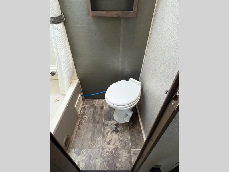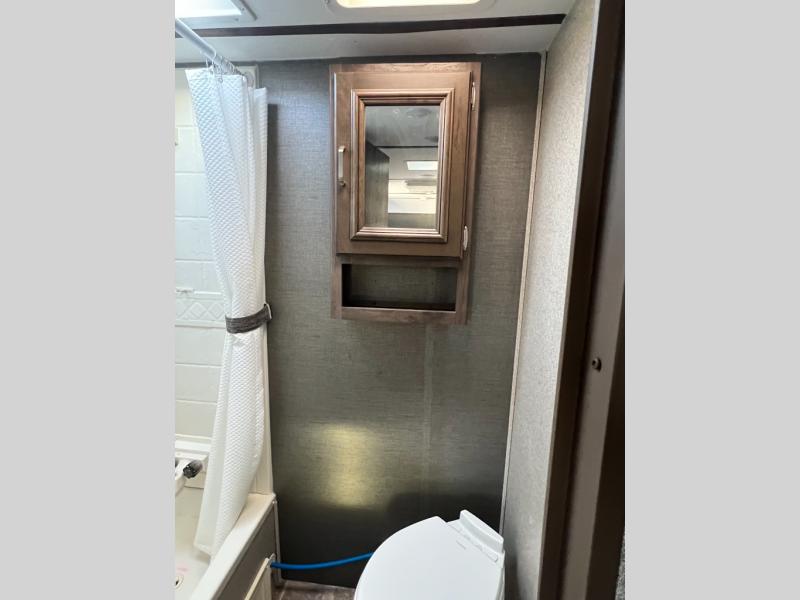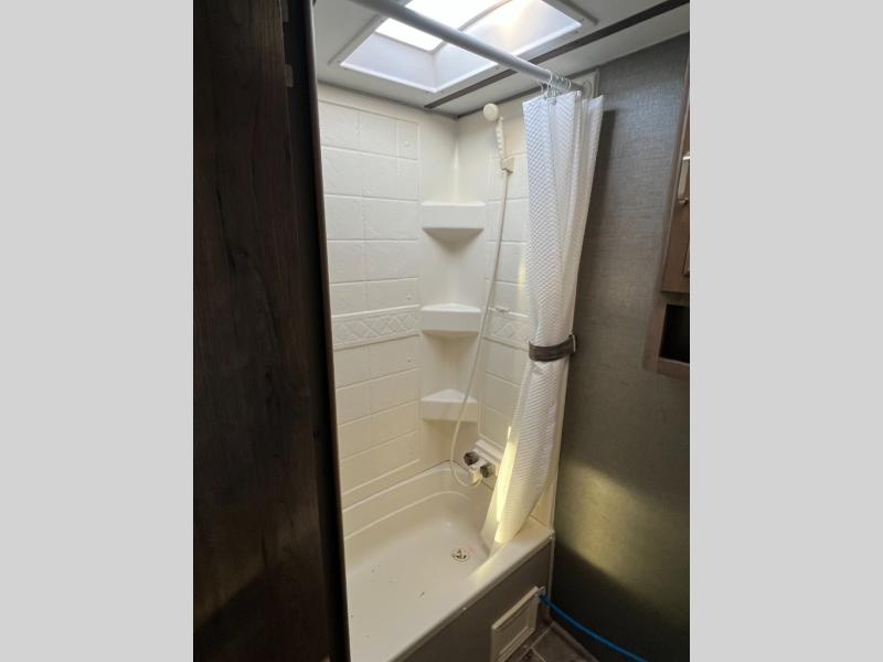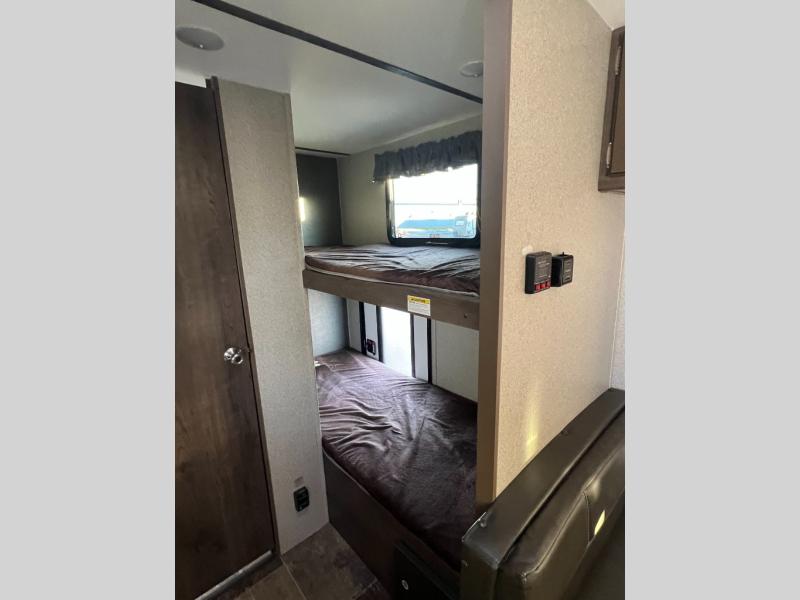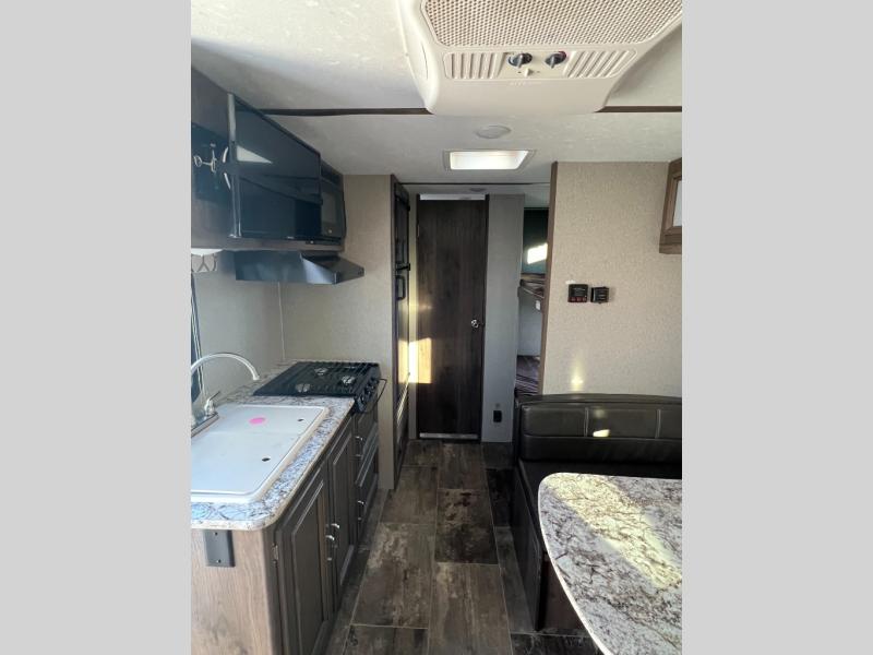 This Passport 175BH Express travel trailer allows you to camp without all the setup and cleanup of the larger units. If you enjoy the outdoors but would like some of the comforts of home, step inside. You can dine at the booth dinette after whipping up the meal before heading out to explore the great outdoors. Once you get back with your family, everyone can take turns showering in the private tub/shower and toilet room. You can sleep on a queen bed up front while the kids sleep on the bunk beds or dinette. There is storage throughout the inside, and the larger camping gear can be stowed away in the exterior pass-through compartment. Start making making memories in this Passport.