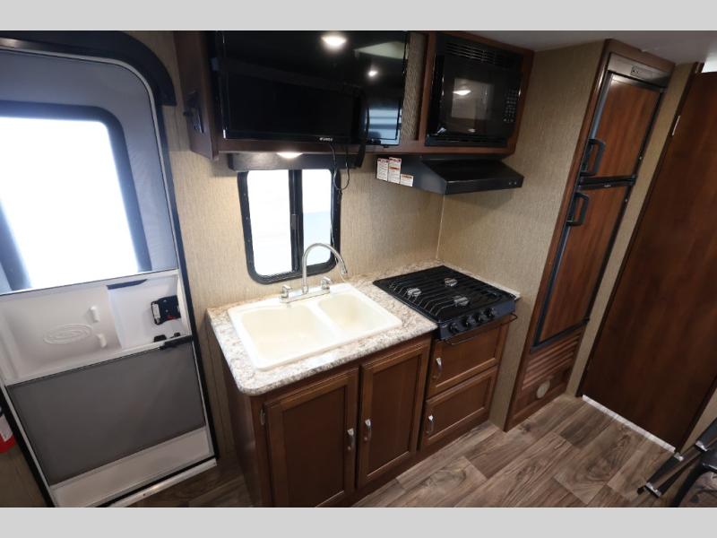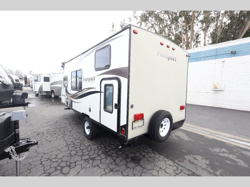 The Passport Express models come in a compact design with travel-friendly lengths that are lightweight and easy to tow behind many smaller SUVs. You will find several residential style features such as durable Armstrong linoleum, furniture with high grade fabric, and raised panel hardwood cabinet doors. The exterior shower is very useful to get cleaned up before entering the RV, washing your pets, or even cleaning a few dishes outside. Choose your favorite Passport Express today, and start making memories tomorrow!