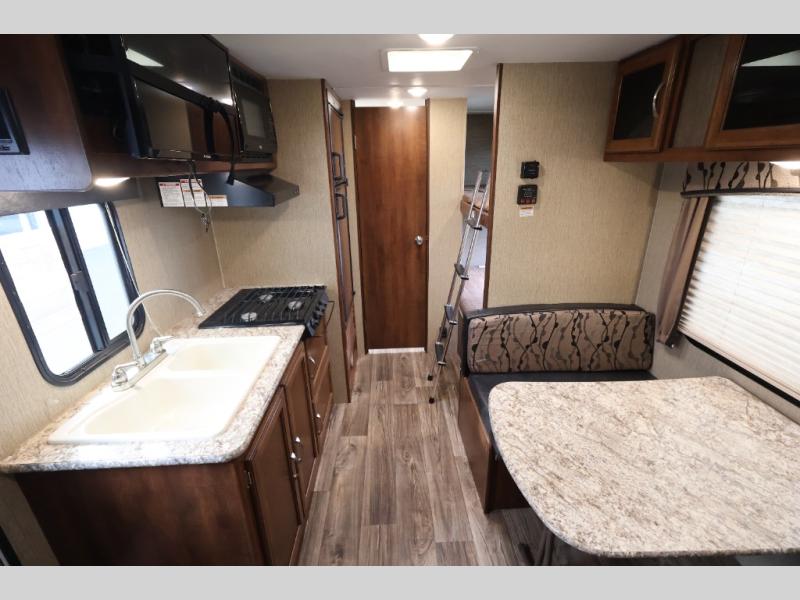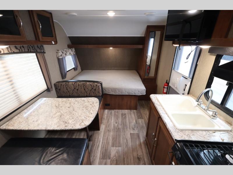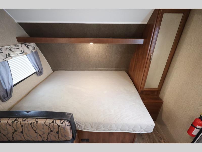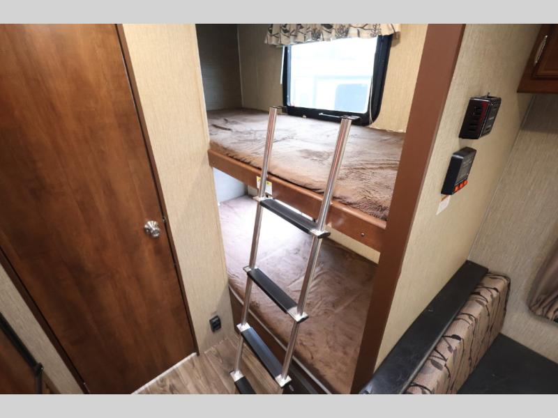 This Passport 175BH Express travel trailer allows you to camp without all the setup and cleanup of the larger units. If you enjoy the outdoors but would like some of the comforts of home, step inside. You can dine at the booth dinette after whipping up the meal before heading out to explore the great outdoors. Once you get back with your family, everyone can take turns showering in the private tub/shower and toilet room. You can sleep on a queen bed up front while the kids sleep on the bunk beds or dinette. There is storage throughout the inside, and the larger camping gear can be stowed away in the exterior pass-through compartment. Start making making memories in this Passport.
