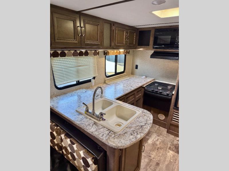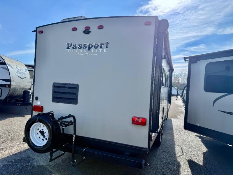 The Passport Grand Touring models are lightweight and towable behind many SUVs and half-ton trucks. Each model comes with Load Equalization axles that reduce sway for an easy tow, and the unit has an enclosed, sealed and heated underbelly for four seasons of traveling. Once at your destination you can walk up the triple entry steps and grab onto the XL folding entry assist handle for support. You will find several residential style features such as durable Armstrong linoleum, furniture with high grade fabric, and raised panel hardwood cabinet doors. The exterior shower is very useful to get cleaned up before entering the RV, washing your pets, or even cleaning a few dishes outside. Choose your favorite Passport Grand Touring model today, and start making memories tomorrow!