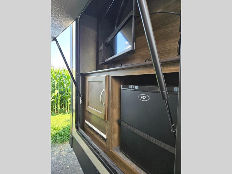 Because of the innovative and modern approach that Keystone has taken with the construction of the Premier travel trailer, you receive a unit that is both functional and comfortable. The residential in-floor heating system gives the stain-resistant Beauflor linoleum flooring a warm and cozy touch, and the 6' 11" vaulted ceilings keep the entire trailer open and inviting to all guests. If you enjoy hosting late-night get togethers with those guests, then the outdoor electric awning with LED lights is a perfect spot for you and your friends to get together as you listen to your favorite music on the exterior speakers.