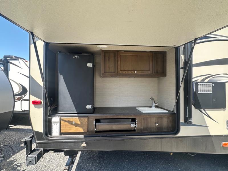 Because of the innovative and modern approach that Keystone has taken with the construction of the Premier travel trailer, you receive a unit that is both functional and comfortable. The residential in-floor heating system gives the stain-resistant Beauflor linoleum flooring a warm and cozy touch, and the 6' 11" vaulted ceilings keep the entire trailer open and inviting to all guests. If you enjoy hosting late-night get togethers with those guests, then the outdoor electric awning with LED lights is a perfect spot for you and your friends to get together as you listen to your favorite music on the exterior speakers.