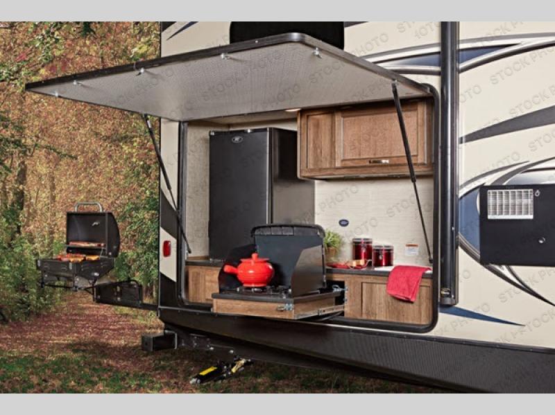 Because of the innovative and modern approach that Keystone has taken with the construction of the Premier travel trailer, you receive a unit that is both functional and comfortable. The residential in-floor heating system gives the stain-resistant Beauflor linoleum flooring a warm and cozy touch, and the 6' 11" vaulted ceilings keep the entire trailer open and inviting to all guests. If you enjoy hosting late-night get togethers with those guests, then the outdoor electric awning with LED lights is a perfect spot for you and your friends to get together as you listen to your favorite music on the exterior speakers.