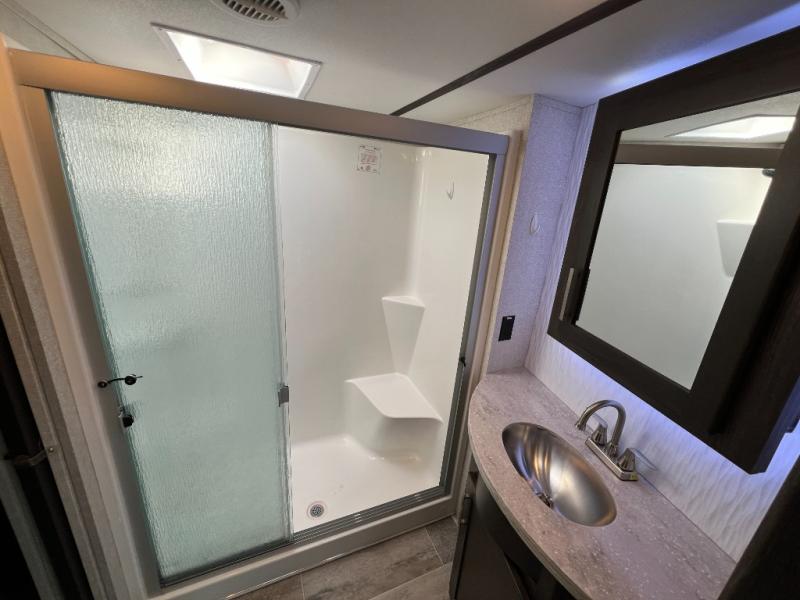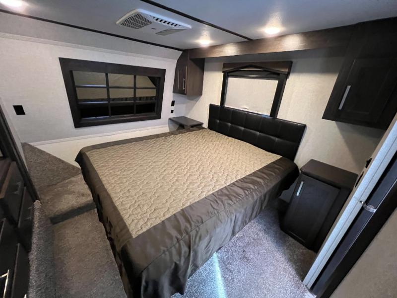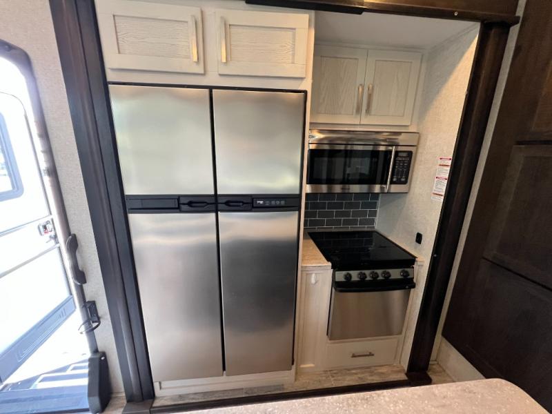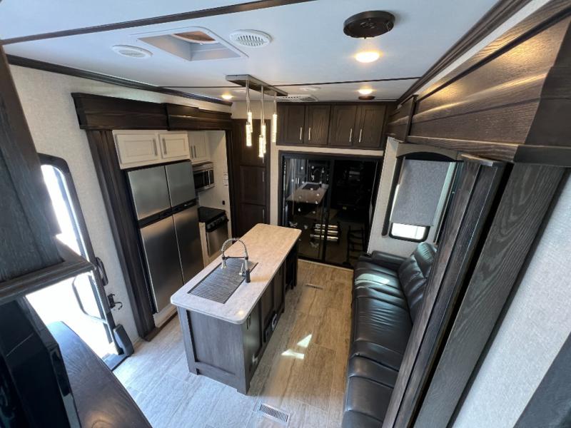 This Raptor toy hauler by Keystone has broken free from the rugged models of years past with its sharp, refined accessories and modern style, and as an industry first, this model includes the largest made-for-RV refrigerator which is a residential-size of 18 cubic feet. This toy hauler is also a part of the only towable manufacturer who incorporates color-coded and numbered electrical wiring in its products, helping you save time and energy when troubleshooting electrical issues.