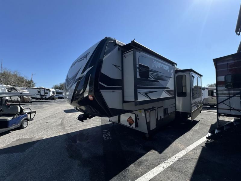 This Raptor toy hauler by Keystone has broken free from the rugged models of years past with its sharp, refined accessories and modern style, and as an industry first, this model includes the largest made-for-RV refrigerator which is a residential-size of 18 cubic feet. This toy hauler is also a part of the only towable manufacturer who incorporates color-coded and numbered electrical wiring in its products, helping you save time and energy when troubleshooting electrical issues. Another best-in-the-industry component that is included with this toy hauler is the 3-year limited structural warranty backed by Keystone RV which will ensure that this unit truly is built for the long haul.