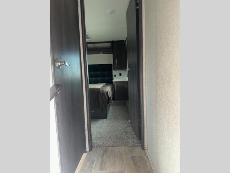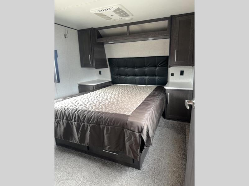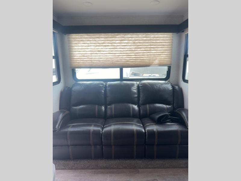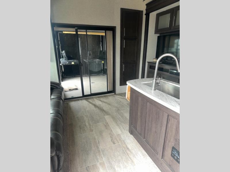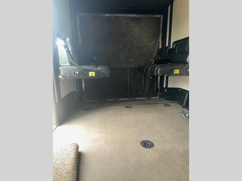 A separate 13' garage in this Predator Series Raptor model is a huge plus if you are concerned about keeping the garage area smells out of the kitchen! With a half bath in the garage area as well, the dirt and grime being brought inside will be minimal from your outdoor thrill seekers! And, with an electric bed and dual opposing sofas you can easily bring along a few riding buddies for the trip. Inside the main living area, you will find the comforts of home when you are done for the day. A warm meal, cool drinks, and a nice hot shower are all awaiting you. There is even a cozy private master bedroom with a queen bed up front for the owner of the rig to enjoy a little quiet time and a great night's rest! A 30-gallon fuel station for your toys, an outdoor shower, and a 19' electric awning with LED lights all add to the fun when you are not ready for the day to end. Let this Raptor Predator Series allow you all the fun you were hoping for on every weekend getaway!