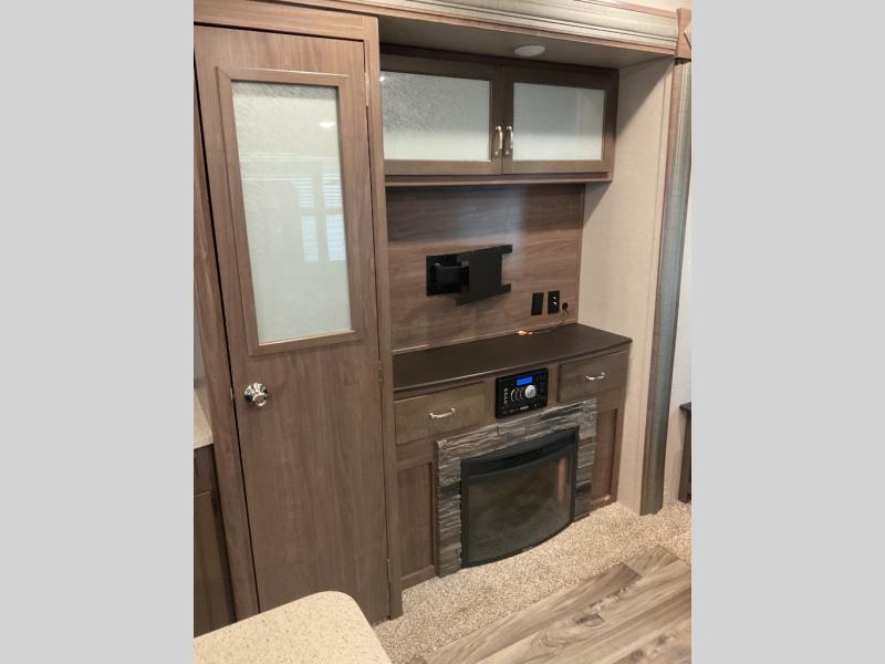 This spacious Keystone Retreat destination model 39MKTS has triple slides, dual entry doors, and everything you need to have fun while away from home. The living area has plenty of space for entertaining guests. There is a 40" TV in the living space, just pop in a movie on a cooler night, take a seat in any one of the comfortable seating options, and enjoy making memories with your family. The cabinetry and the storage areas in this unit are perfect for taking along as many items as you would like.