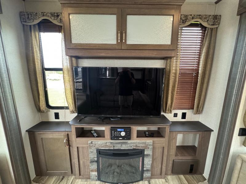 This 391RDEN is the unit you want to take a look at if you are planning on vacationing for a long period of time. This rear living unit gives your guests space of their own if they want to use the sleeper sofas for their sleeping space at night. The private front bedroom has a king bed and plenty of storage options for your things. There is a private entry door into the bathroom for convenience especially at night. The kitchen is nice and big, giving you plenty of space for prepping for meals, cooking them and cleaning up afterward. The residentially sized fridge will give you plenty of room for storing your perishables while you are away from home.