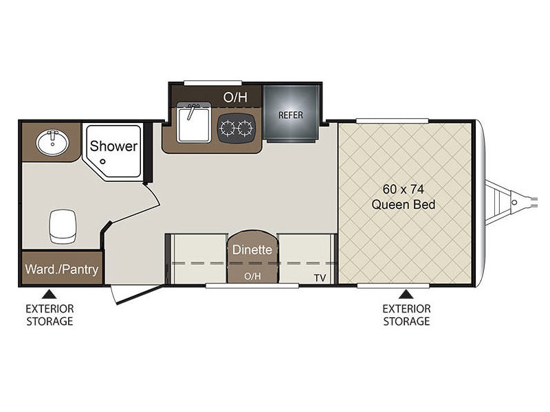On the outside you will enjoy ample storage for your outdoor gear with compartments beneath the front bed and rear wardrobe/pantry area, plus so much more!