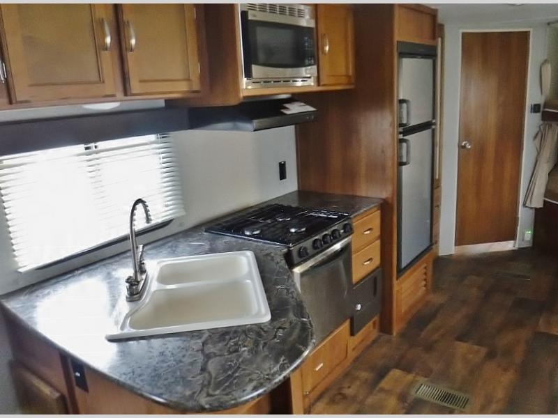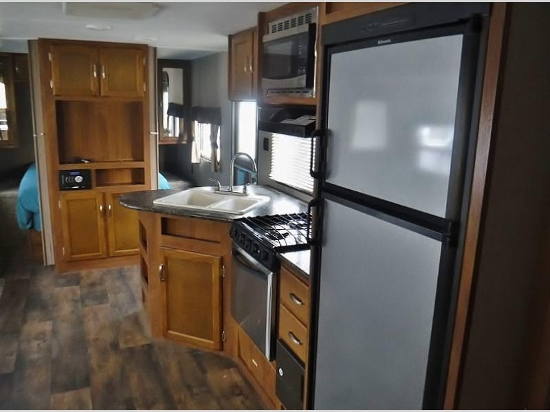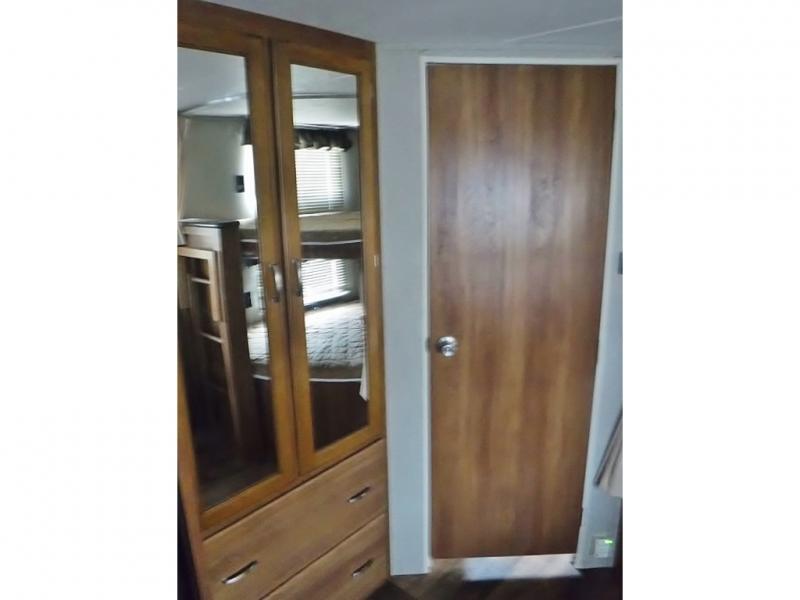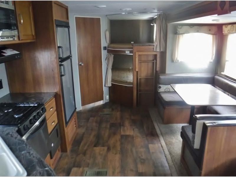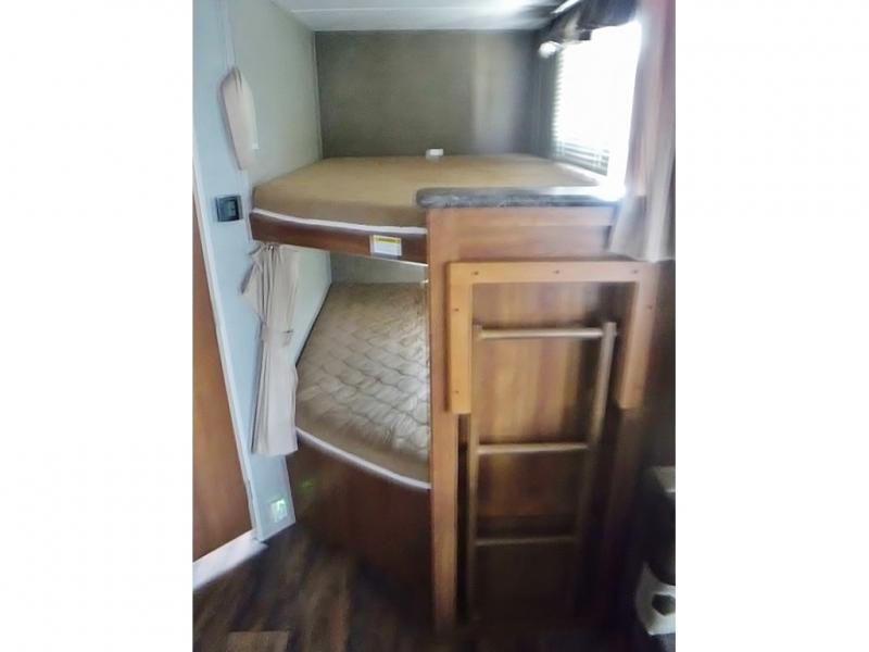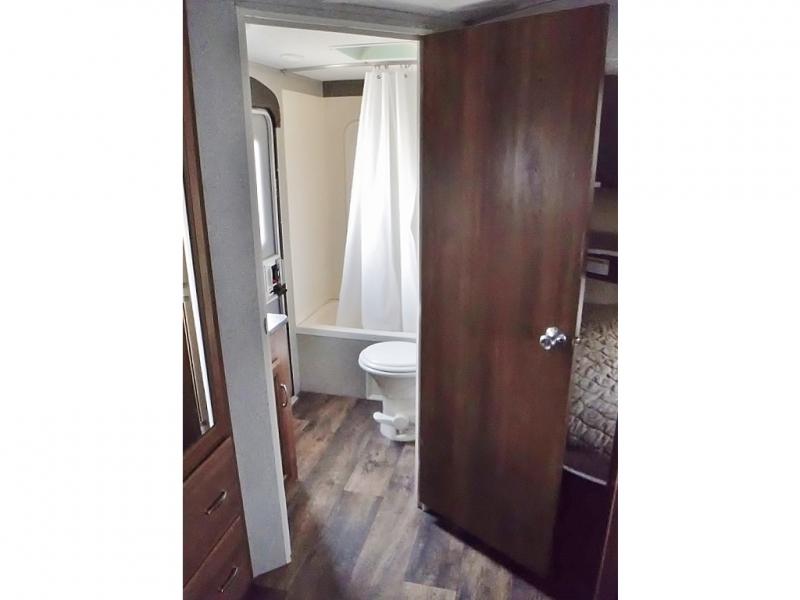 This is the perfect unit for a larger family or one that likes to travel with extra guests. This Keystone Springdale 282BHWE features dual entry doors, a set of double size bunks, and a large slide out for added interior space. In the private front bedroom, there is a sliding door for more privacy in the front bedroom where you will enjoy sleeping on a queen size bed. In the rear, there are double bunks for your kids to enjoy, and the convenience of the bathroom is super nice, especially at night. The outdoor entry into the bathroom makes it easy to access when enjoying the outdoors. No running through the entire unit to get to the bathroom!