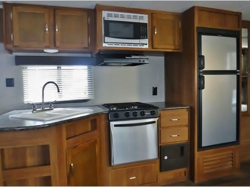 Springdale travel trailers have storage under the master bed for just the right amount of “extra“ storage space, and with the vaulted ceilings, you won’t have to worry about low ceilings being a problem. The powder coated I-Beam frame, Lion's Head Nitro filled tires, and hurricane straps that reinforce the structure are just a few of the standards that you will get when you choose a Springdale model. Choose yours today!
