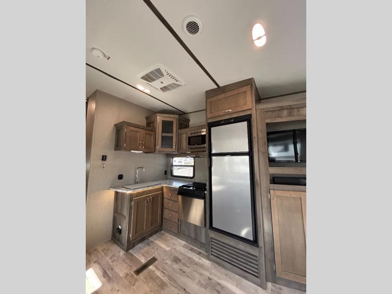 This Sprinter fifth wheel model 269FWRLS features a wide body design for added interior space. You will enjoy a rear living layout, double slides, and a fireplace also!