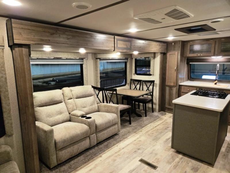 With any Sprinter travel trailer or fifth wheel you can expect "Camping Made Easy!" With the Limited Advantages found on today's models, you will have peace of mind knowing that your unit is quality built and has been triple and quadruple checked before it even leaves the plant. And, once it does, you will still retain a 3-year Industry-Leading limited structural warranty. With the KeyShield paint protection, you can expect your front cap to be looking like new for years to come with up to seven layers of paint protection covering it. You will also appreciate the remote that allows you to easily control your slide rooms, awning, lights, and enjoy push-button leveling! Yes, you heard that right, auto leveling no longer has you crawling around on your hands and knees sliding around boards to level. If all that technology isn't enough, know that your Sprinter is fully prepped for as much technology that you wish. You will find solar prep, backup camera prep, Wi-Fi prep, and so much more! Come make your selection today!