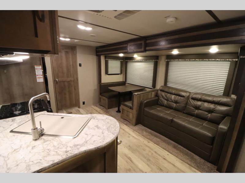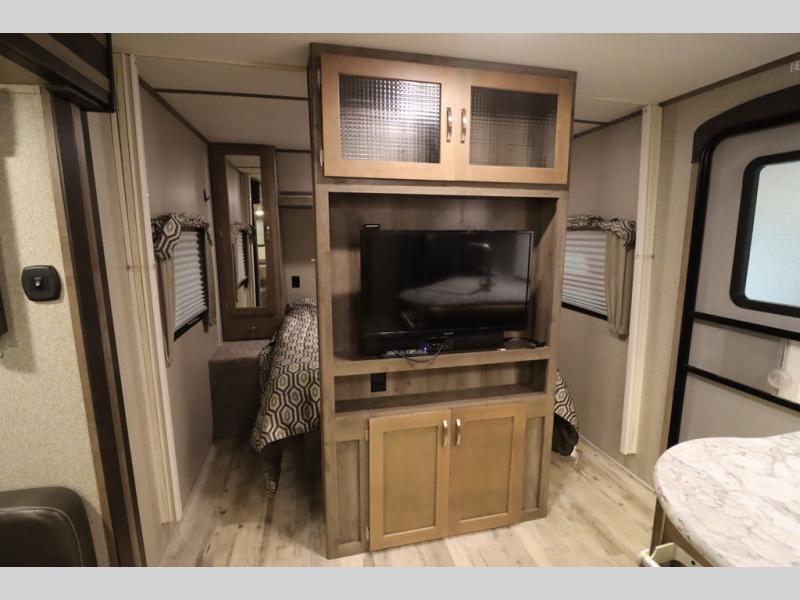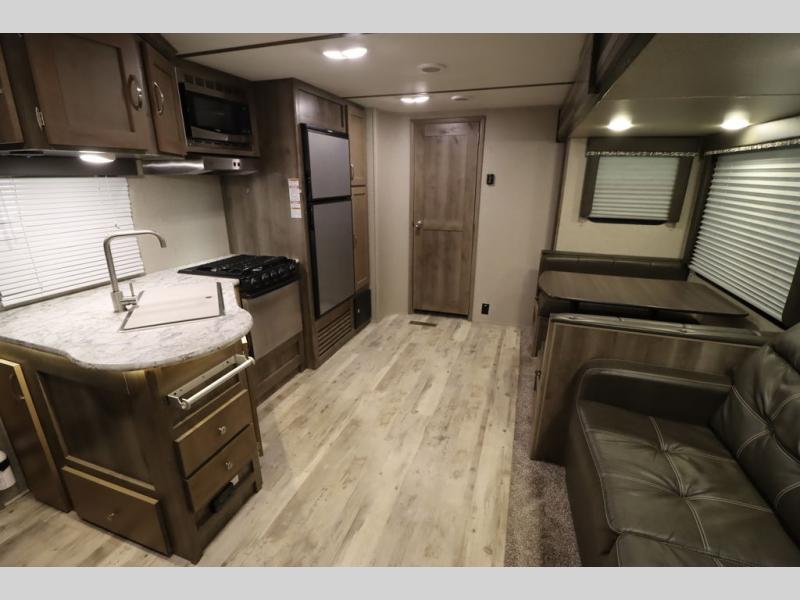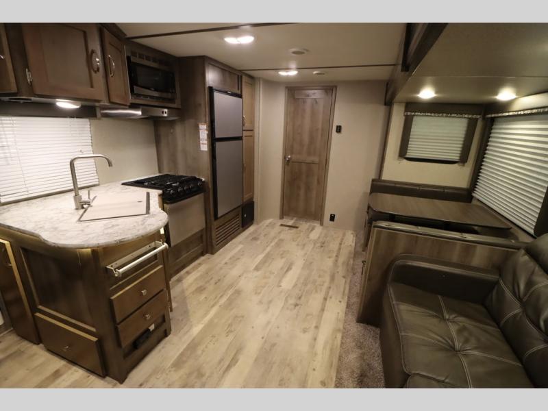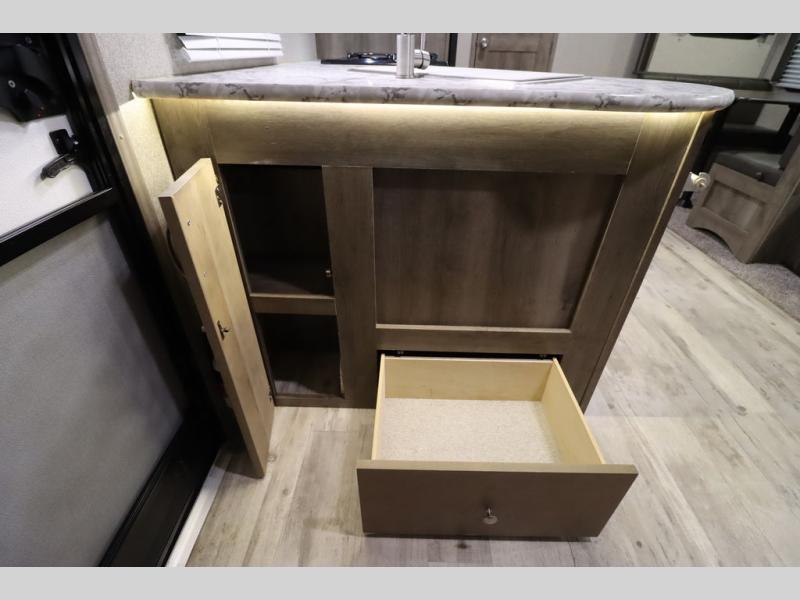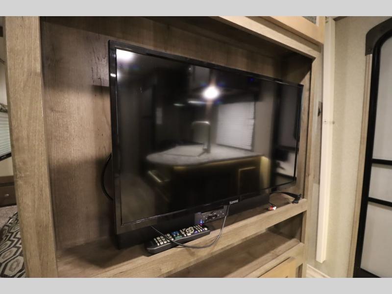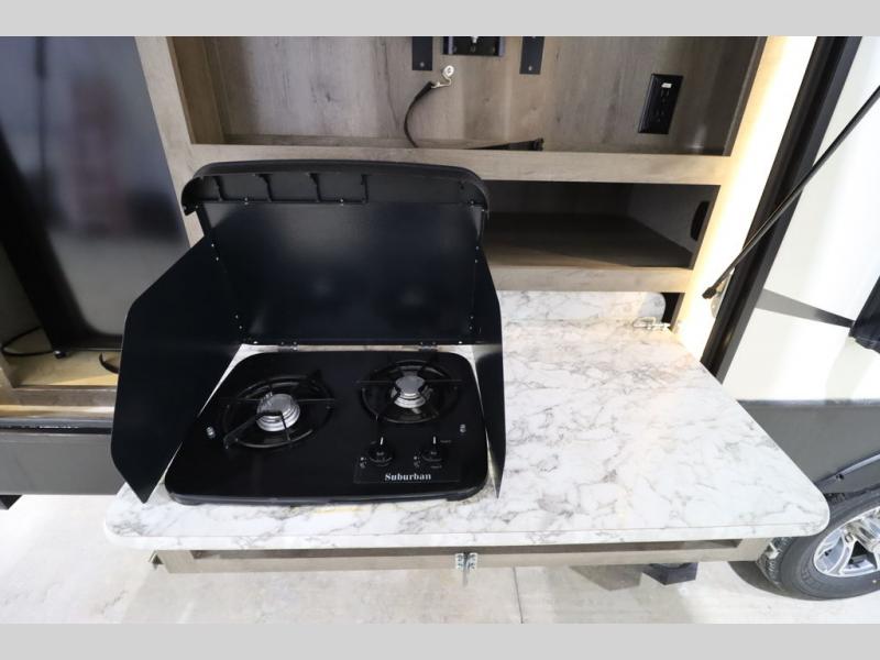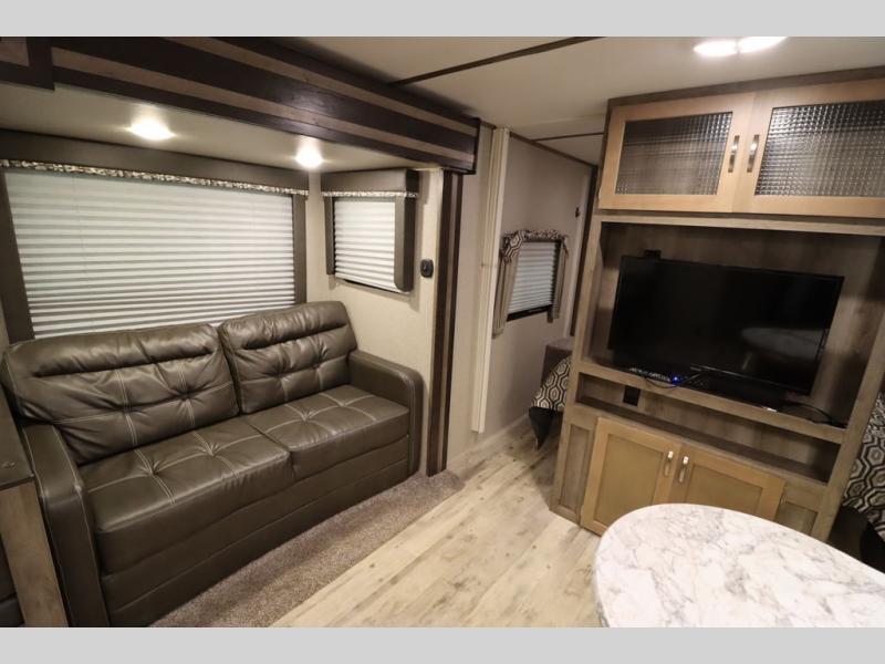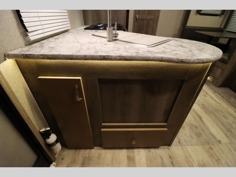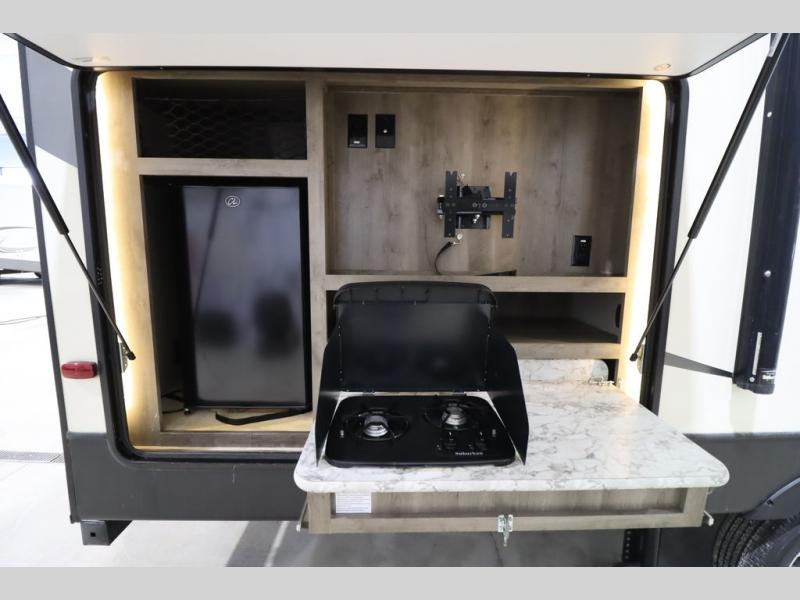 This Sprinter Campfire Edition travel trailer by Keystone RV offers all the amenities you need to enjoy spending time away from home. Outside, you will LOVE this unit! There is an electric awning that you can put up when it is sunny outside, and you want some shade to enjoy the great outdoors. It is also super convenient to have the Campfire exterior kitchen, so you don't have to walk back inside every time you need something. The 32" HDTV is awesome so you can watch the big game while enjoying the outdoors. Inside, you have sleeping space for up to four individuals comfortably.
