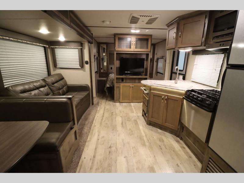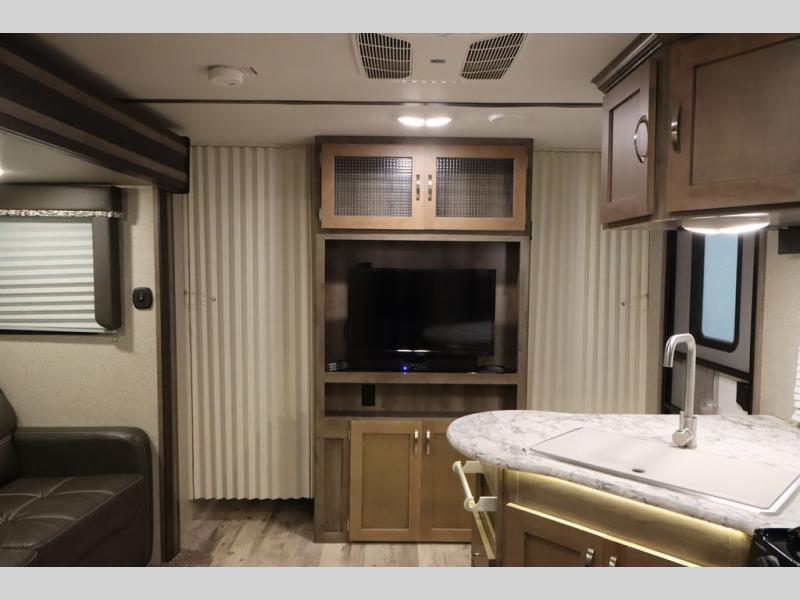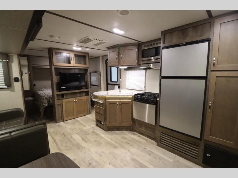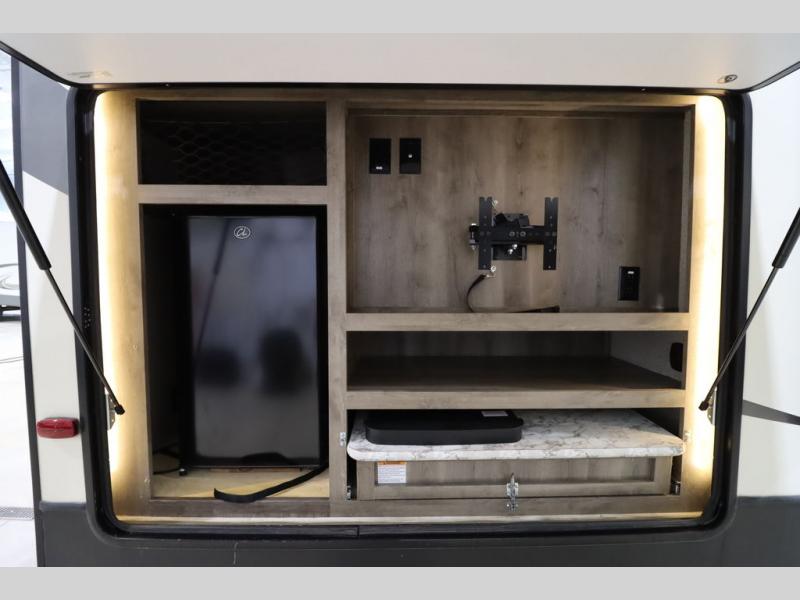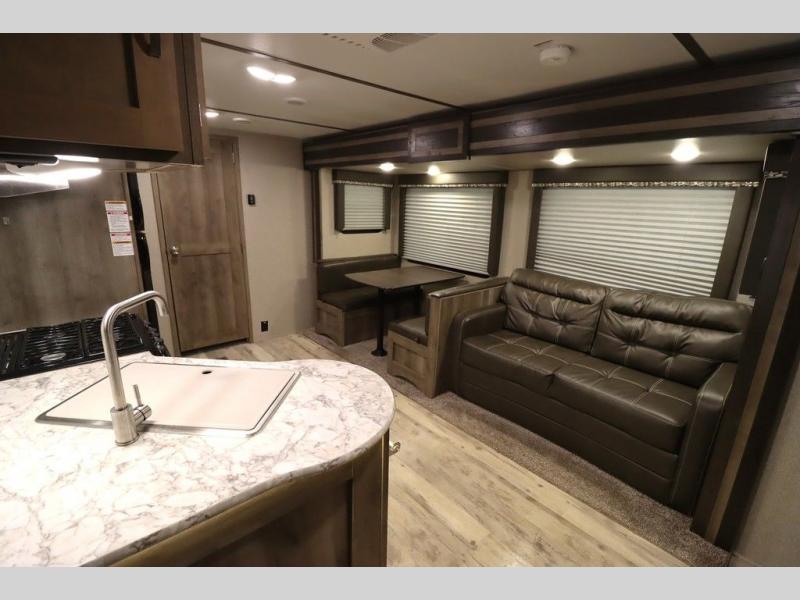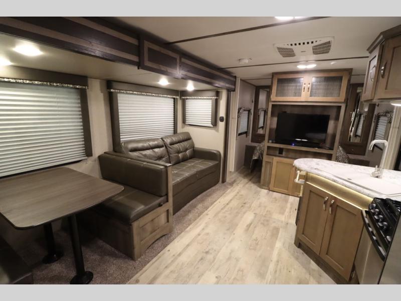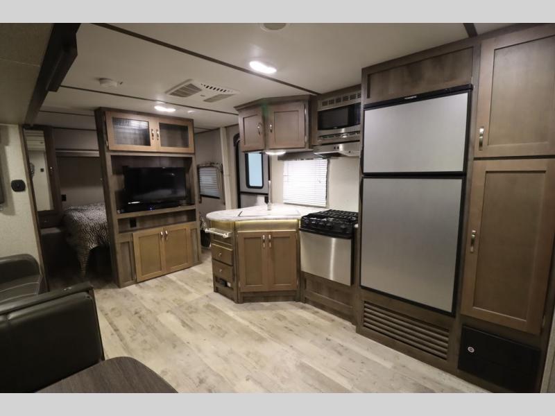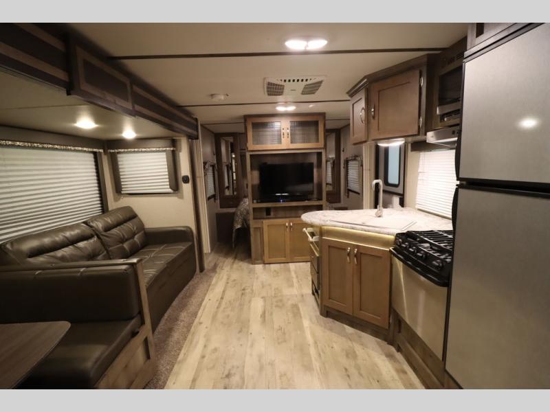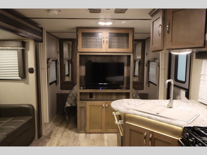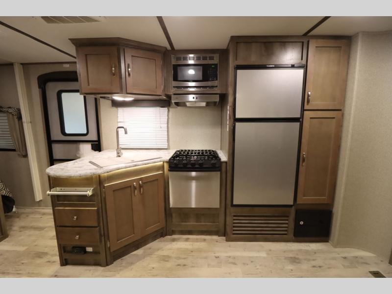 This Sprinter Campfire Edition travel trailer by Keystone RV offers all the amenities you need to enjoy spending time away from home. Outside, you will LOVE this unit! There is an electric awning that you can put up when it is sunny outside, and you want some shade to enjoy the great outdoors. It is also super convenient to have the Campfire exterior kitchen, so you don't have to walk back inside every time you need something. The 32" HDTV is awesome so you can watch the big game while enjoying the outdoors. Inside, you have sleeping space for up to four individuals comfortably.