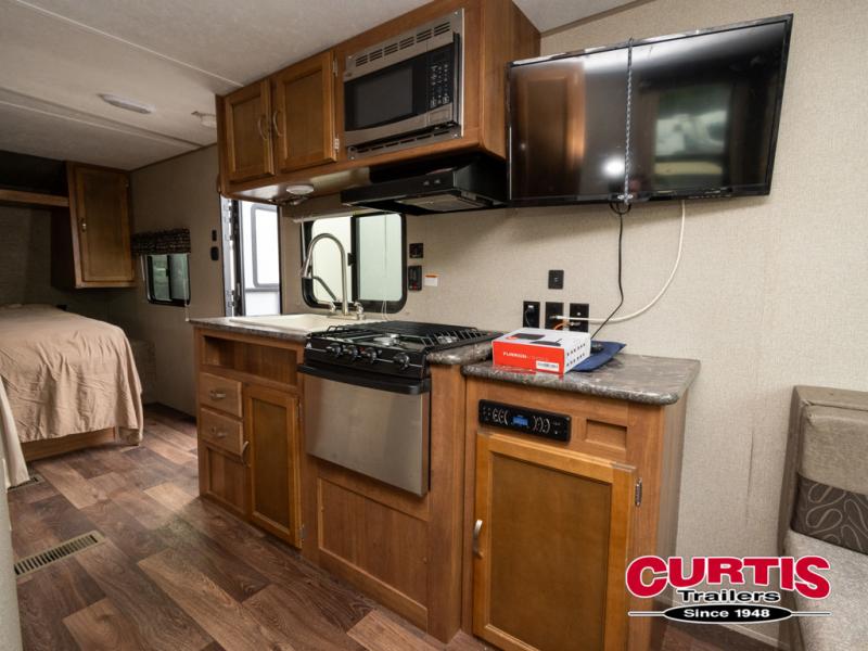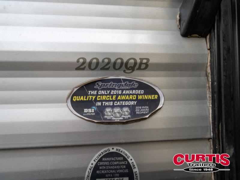 This Summerland travel trailer 2020QB features everything you need to make your time away from home convenient and comfortable. You will have a private front bedroom with a queen bed to lay your head at night and wardrobes for storing your things. It will be easy to prepare light meals and snacks in this Summerland kitchen and the rear has a u-shaped dinette that is perfect for meal times or just hanging out. You can easily view the entertainment center nearby. The dinette can also be made into additional sleeping space if needed at night. You can also enjoy the front pass through storage compartment for all of your exterior camping gear.