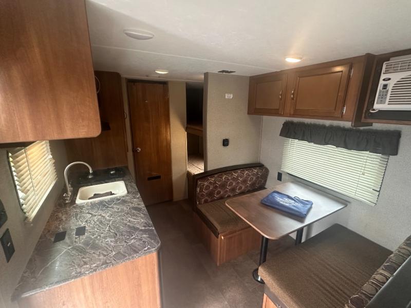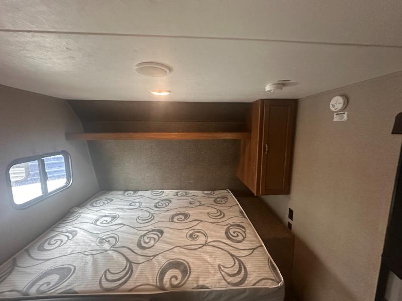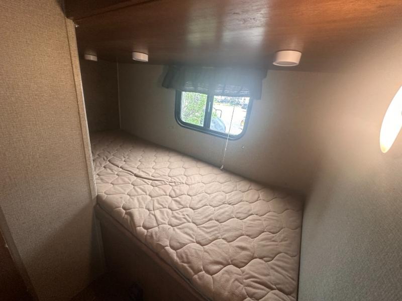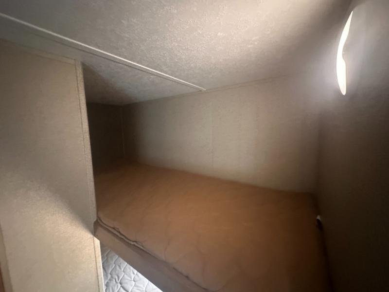 In the rear of this single axle unit find a set of bunks that the kids will certainly love, and a corner bath with tub/shower and toilet, plus so much more!