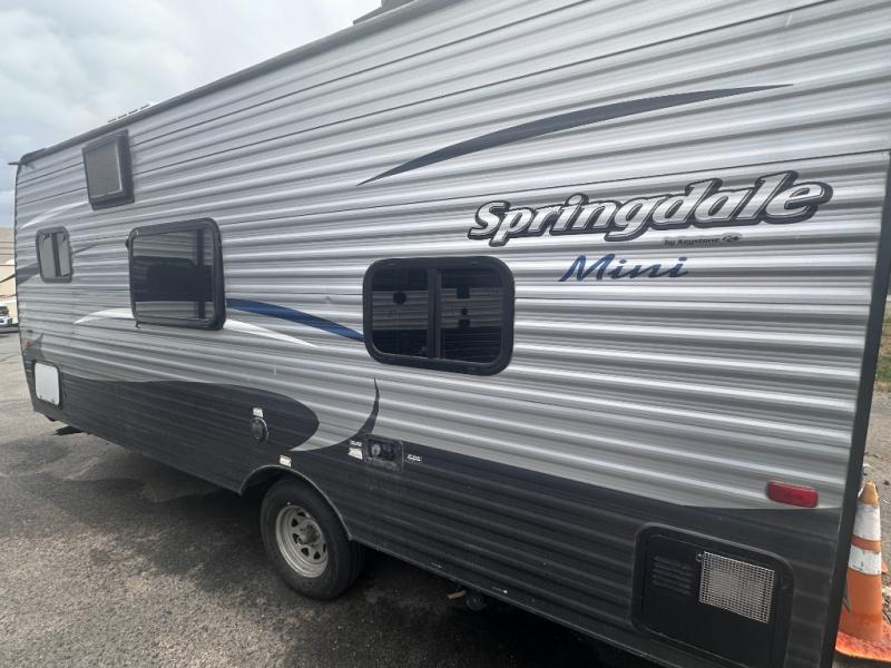 This single axle Summerland Mini 1800BH travel trailer by Springdale features a set of bunks, a rear bath area, and queen size bed, plus more!
