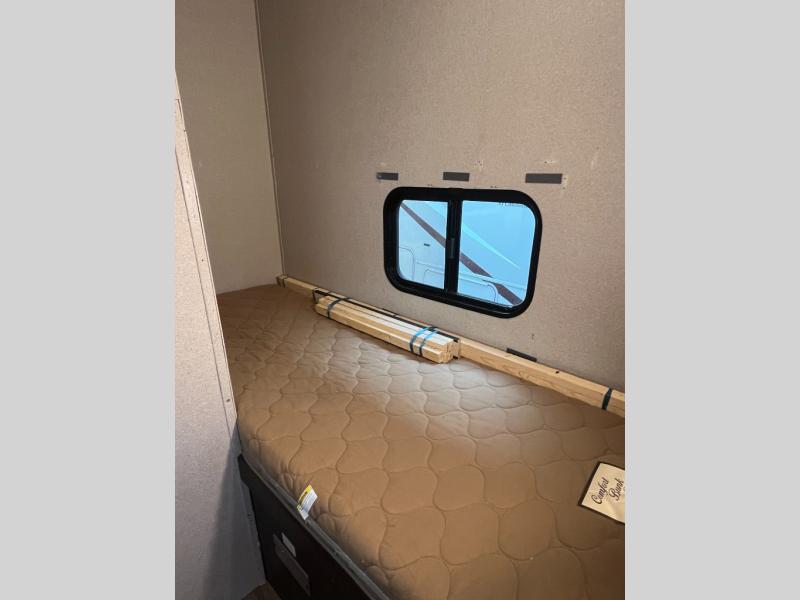 In the rear of this single axle unit find a set of bunks that the kids will certainly love, and a corner bath with tub/shower and toilet, plus so much more!