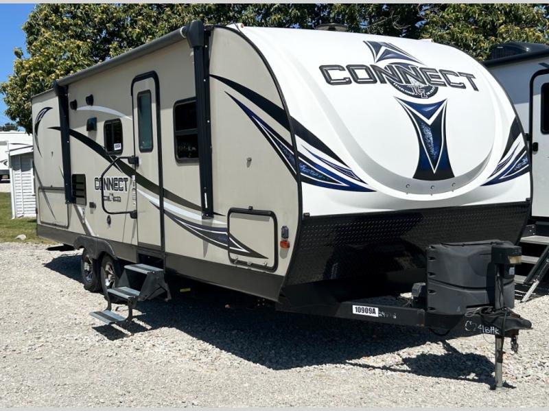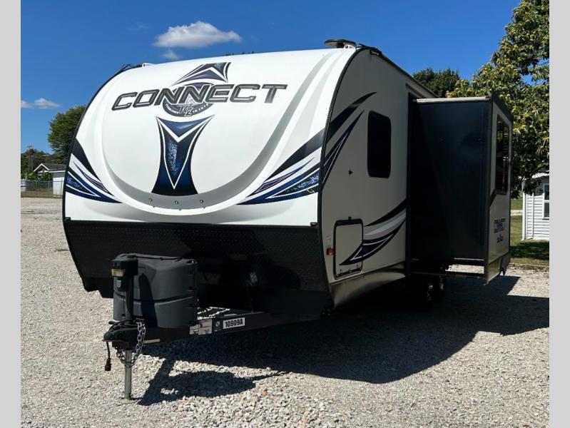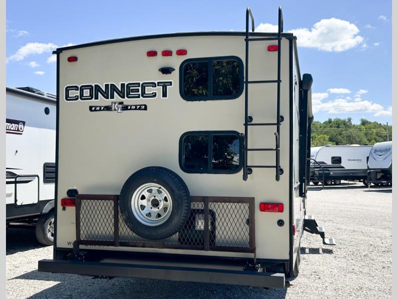 Packed out with style and flexibility, this Connect travel trailer is a wonderfully livable choice for your next family getaway. Because of its ability to sleep eight people, this unit will be a perfect addition to those who travel with large groups, and the single slide that houses the U-shaped booth dinette is what gives the living area its extra space for you to gather together each evening. You won't have to worry about where everyone's luggage will fit because the exterior pass-through storage section will provide enough room for you to bring along any camping gear you may need.